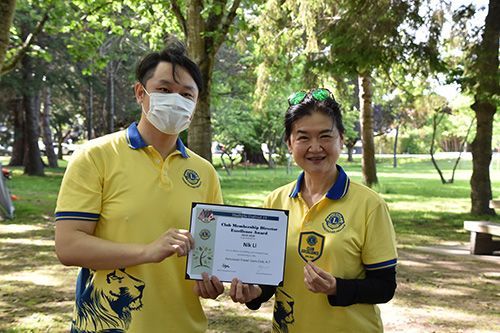 菲沙狮子会于2019年9月成立,2010年举办首次慈善筹款步行健身活动。会长Melissa 张給去年筹款的优秀会员Nik Li 颁发主席奖。