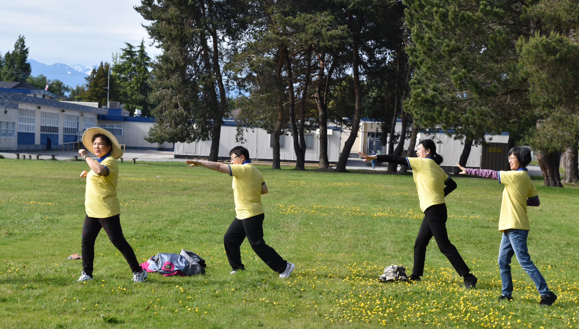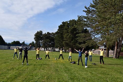 然后,在健身教练Linda Wei女士的带领下,大家在草坪上练健身操