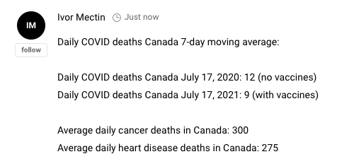 加拿大“2020年7月17日新死亡病例12例(无疫苗)” ,一年后同一天有疫苗,新死亡病例7例:
