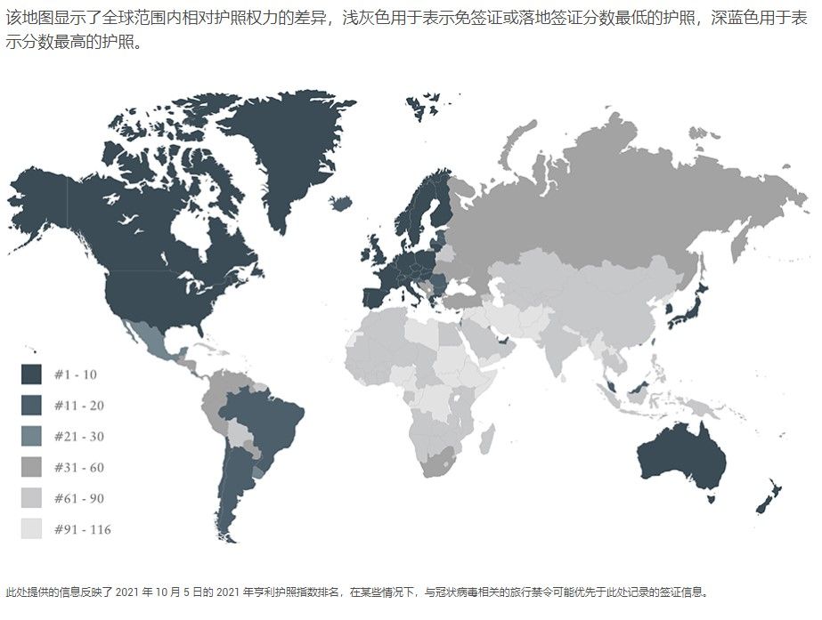日前,全球居留权和公民身分顾问公司Henley & Partners根据国际航空运输协会(IATA)独家数据,公布第4季度《2021年全球护照排行》,对全球护照做出排名。