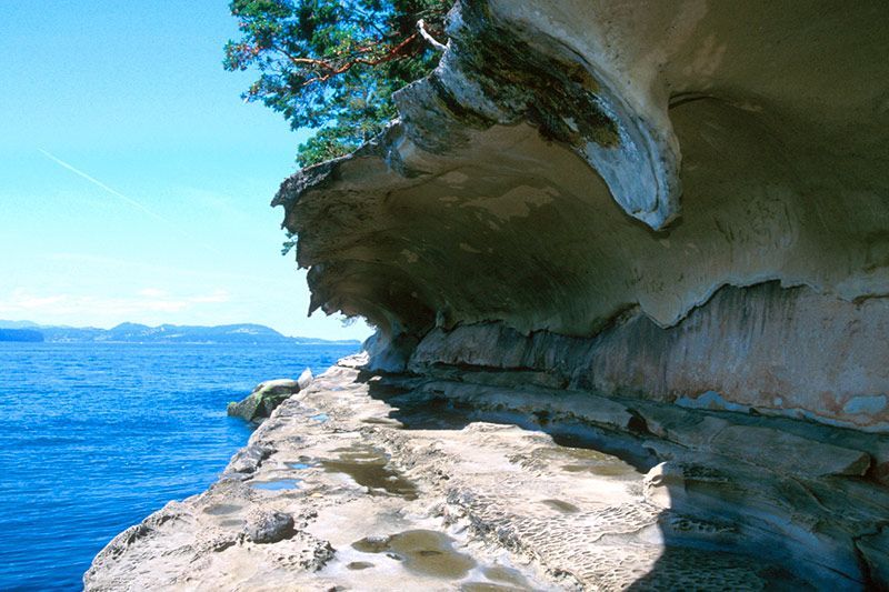 卑诗省这些令人惊叹的岛屿就像一小片天堂,在那里你可以欣赏到明亮的蓝色水域、沙滩和巨大的山脉的壮丽景色。还有一些神奇的隐藏景色,如 Gabriola岛上的砂岩隧道来等待您的探索。