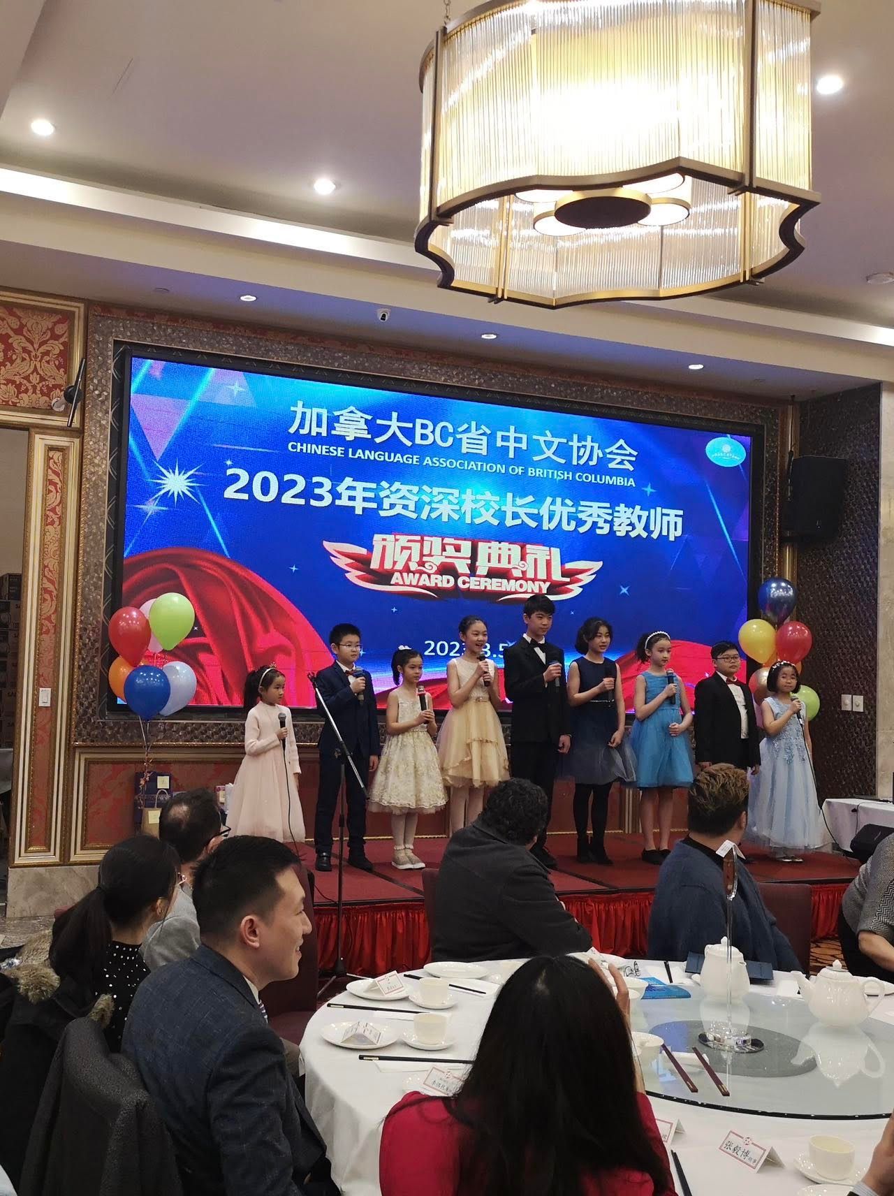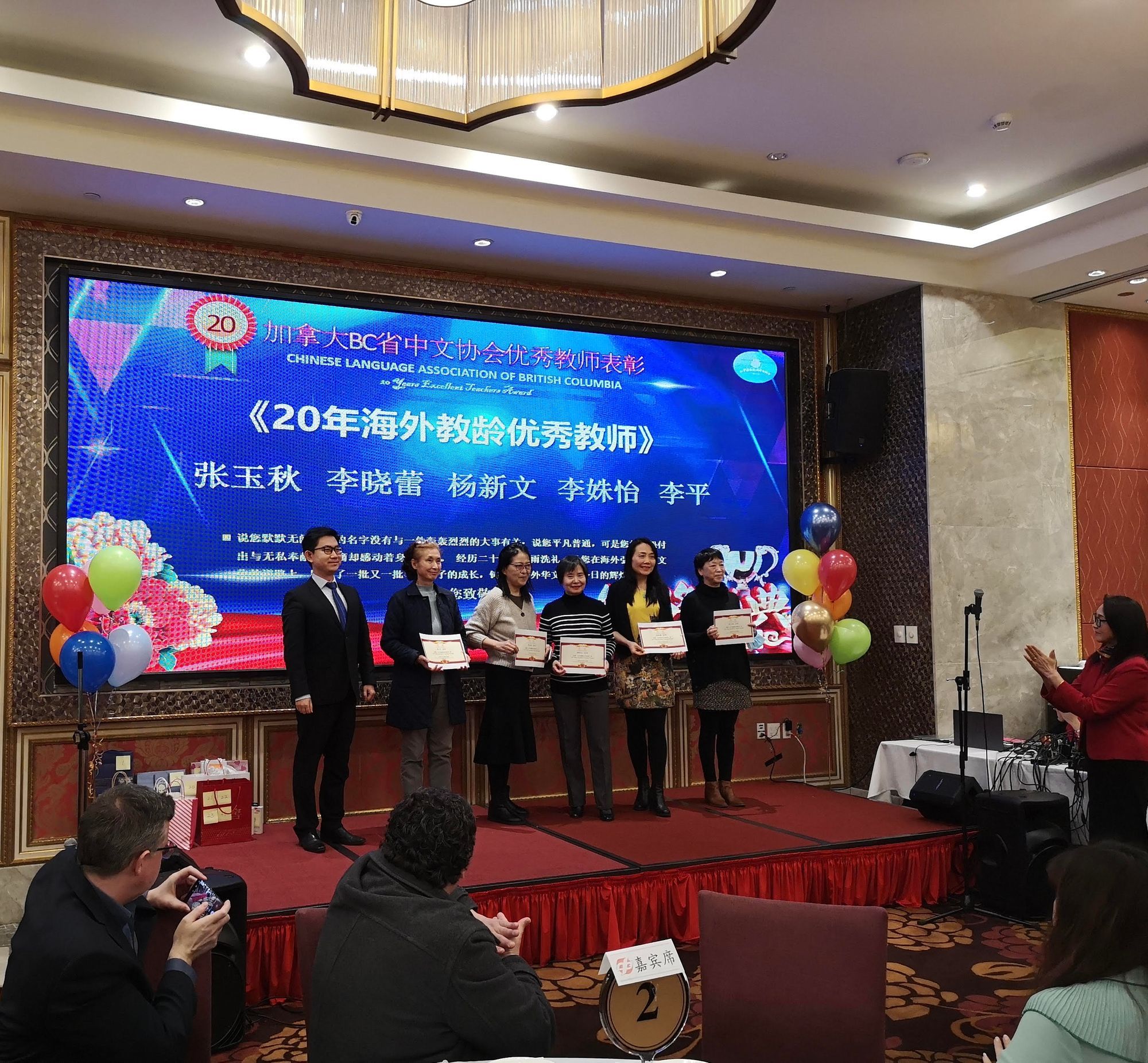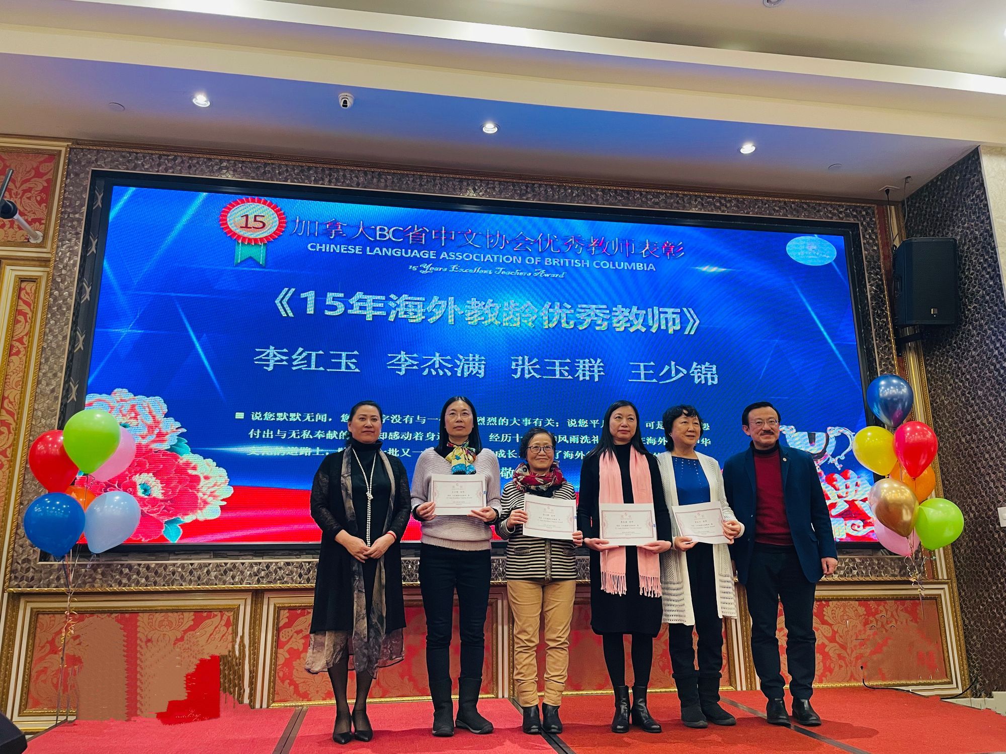 接着,杨舒总领事、张毅博领事和省市议员们、UBC大学李国芳教授、加拿大中华会馆理事长钱华女士、加拿大华人社团联席会执行主席薛晓梅女士、加拿大华人联合总会会长牛华先生、全加华人联会主席蔡宏安先生、加拿大太平洋合众学院董事长李卉女士、加华视讯WOWTV加西总裁陈龙先生、列治文教育局奖学金赞助人李珍老师,她力量全球女性俱乐部主席文卷女士等嘉宾分别为荣获资深中文学校校长及10年、15年和20年优秀教师奖的校长老师们颁发了奖状。