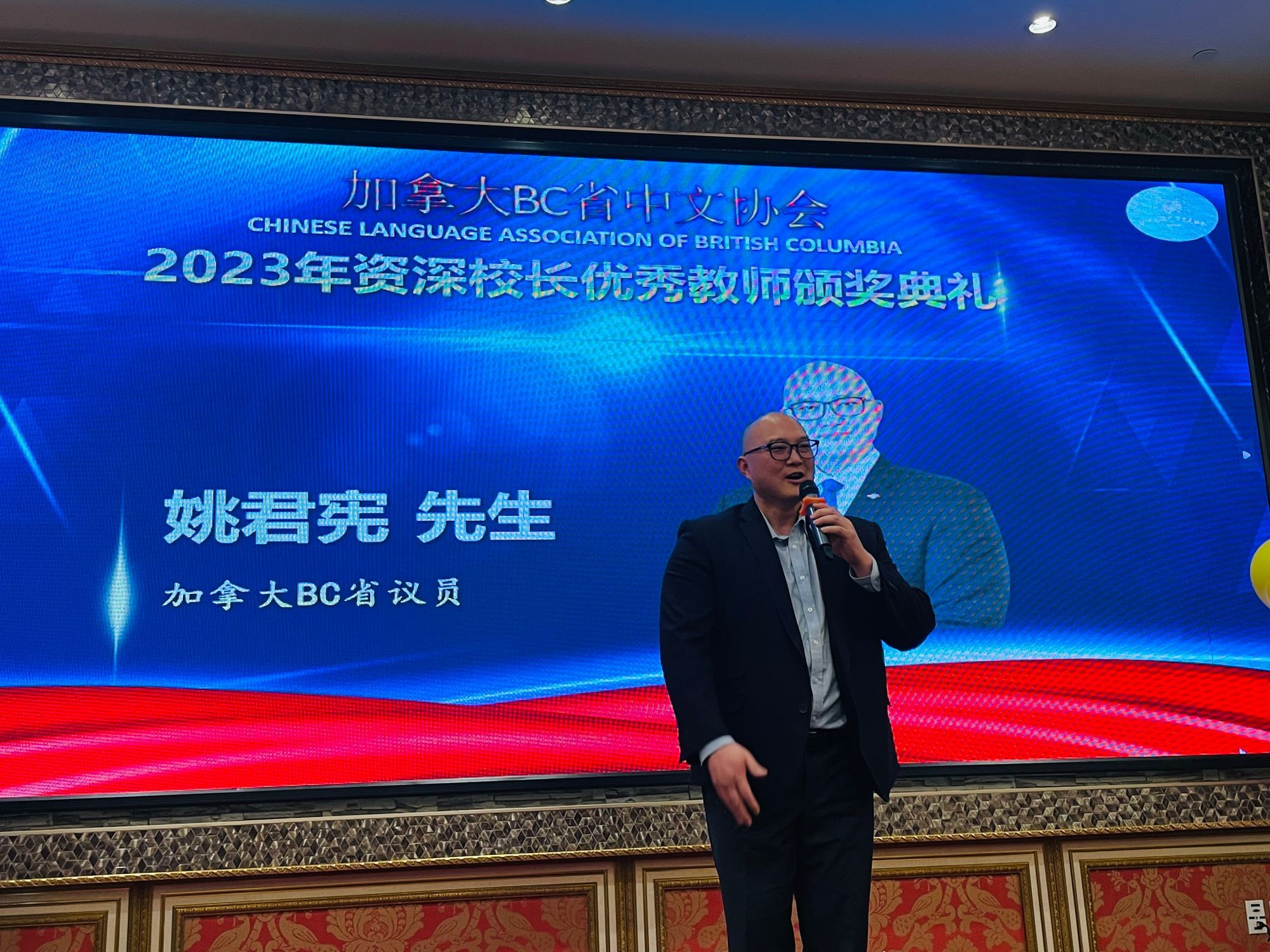 屈洁冰和姚君宪省议员、区泽光和王白进市议员也在致辞中充分肯定了BC省中文协会四十多年来推动将中文纳入国民教育体系做出了不可磨灭的贡献,他们还以自身的经历强调了中文对丰富加拿大多元文化的重要性。