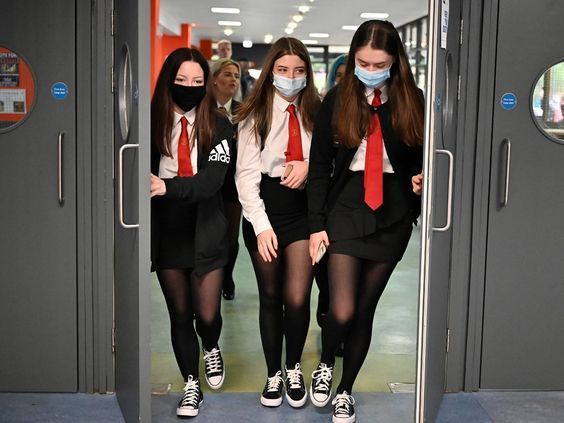 格拉斯哥圣保罗高中在闭校5个月后终于重开校门,学生们回到了学校上课。照片拍摄于2020年8月12日。