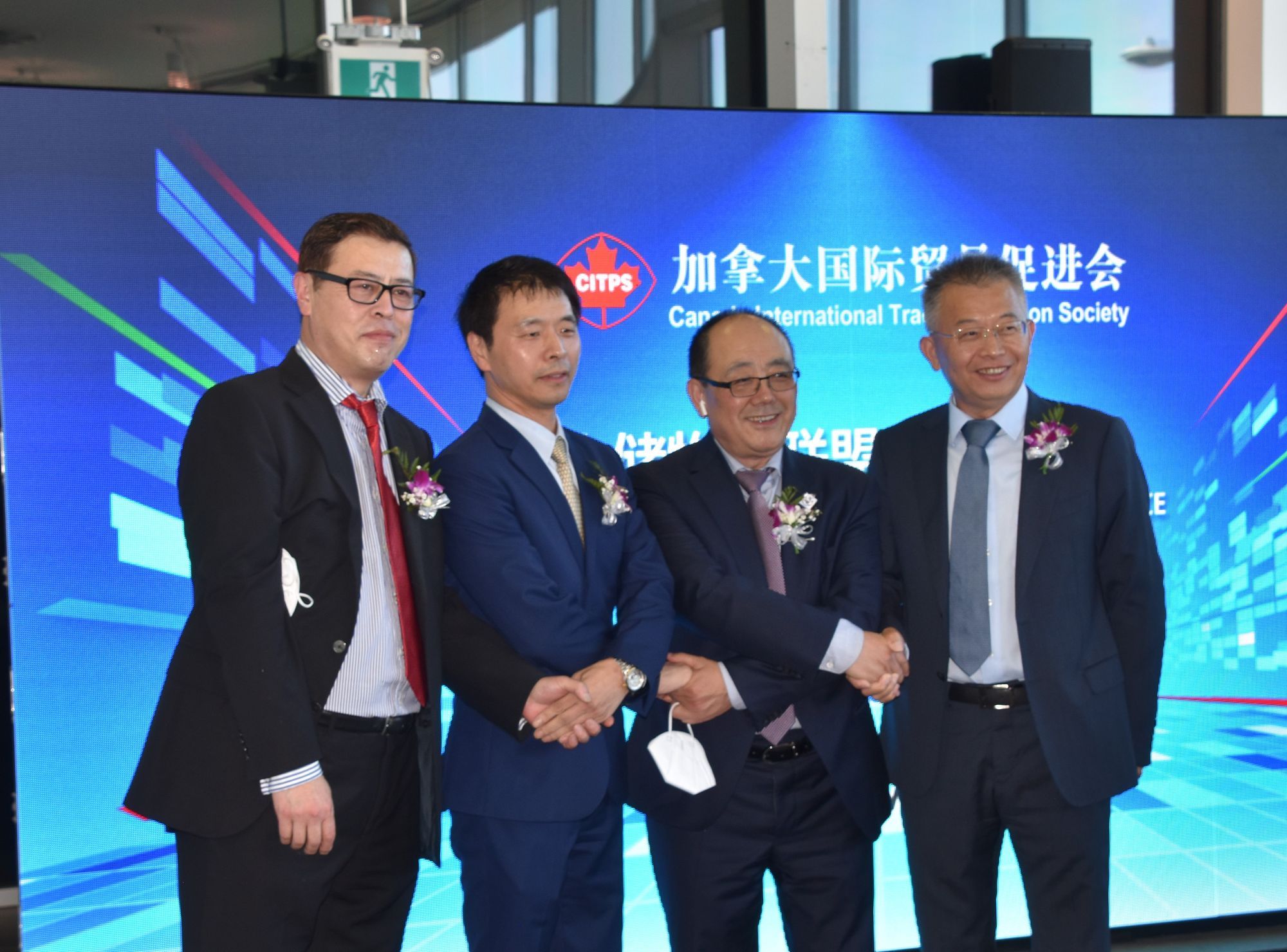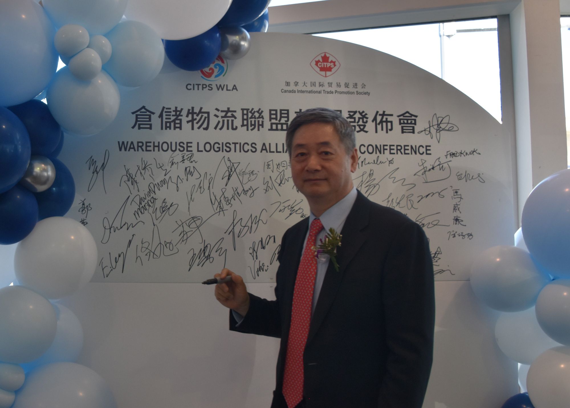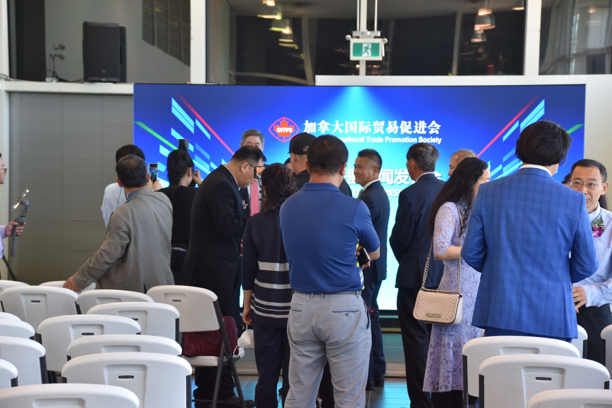 约下午四点,新闻发布会在一片欢乐声中圆满结束了。可人们还是意犹未尽,不愿离去,有些人要与郑会长合影留念,有些人仍然交谈未来,充满了对加拿大国际贸促会的感谢和期盼,期盼加拿大国际贸促会倉儲物流联盟能为减缓加拿大通货膨胀、促进中加贸易的平稳发展作出贡献!