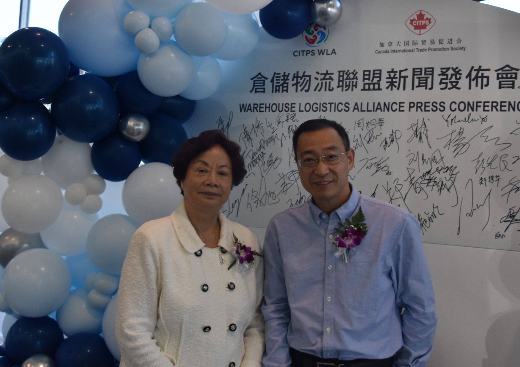 加拿大卑诗省商业省務厅長周烱华先生、中国駐温哥华总领馆经济商务参赞俞善君先生、加拿大国际贸易促进会会长郑小玲女士、贸促会仓储物流联盟成员、温哥华业界企业家、侨领及各界名流近百人出席到贺。