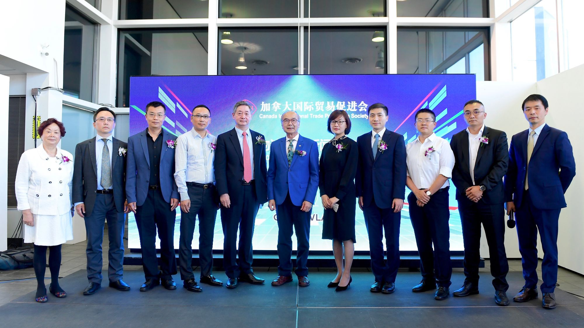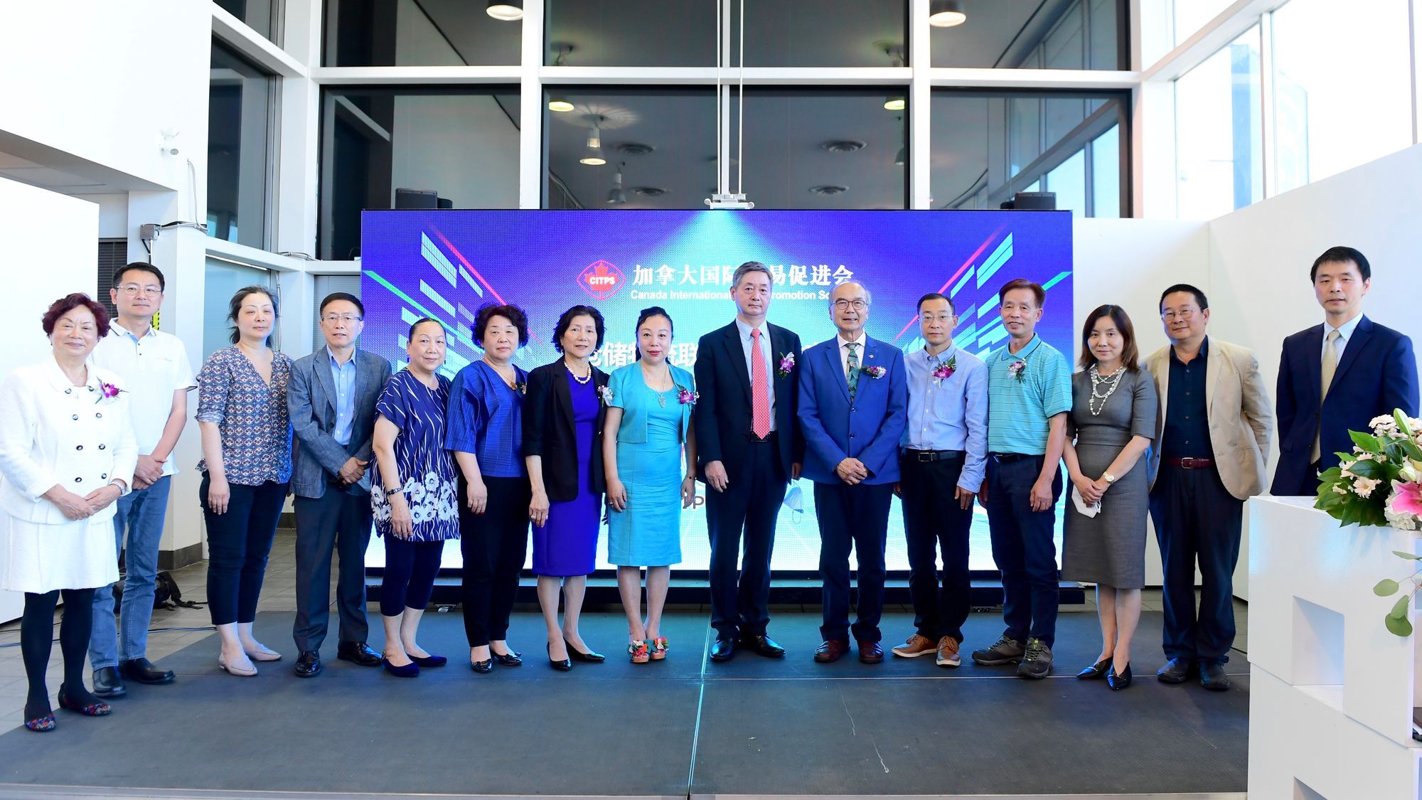 最后,十几位很有影响力的本地的企业家等名人登台祝贺,他们是:迪拜MESOTES 集装箱班轮公司加拿大营运总裁刘宏图、北美建筑业总商会会长佟旭、中华会馆公关组长郑绮华、加拿大莞商联合会常务副会长兼秘书长陈桥生、加拿大菲沙义工协会会长张蕙馨、Wilowest张诗雨、加中友好合作协会会长韩燕、BLARA ORGANIC HOUSE总裁安聚玉、加拿大华人投资与企业家协会创会会长彭先明
