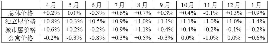 第一,独立屋市场价格在加速上升。过去半年来独立屋的市场价格涨幅一直维持在每月1.0%以上,尤其是1月份,一个月内的平均涨幅更是高达1.4%。