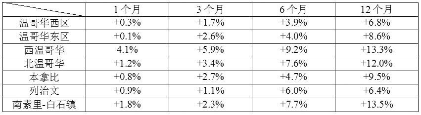 我们来看看温哥华东区、西区、西温、北温、本拿比、列治文、南素里-白石镇等华人聚居和钟爱的独立屋市场,过去一年来这几个城市区域的表现如何呢?