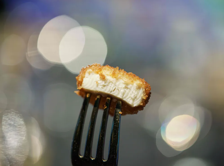 这是实验室用鸡肉细胞培养的肉制成的鸡块。美国两家细胞肉培育公司UPSIDE Foods和GOOD Meat 率先向当地餐馆销售他们的人造鸡肉产品。(Nicholas YEO / AFP via Getty Images)
