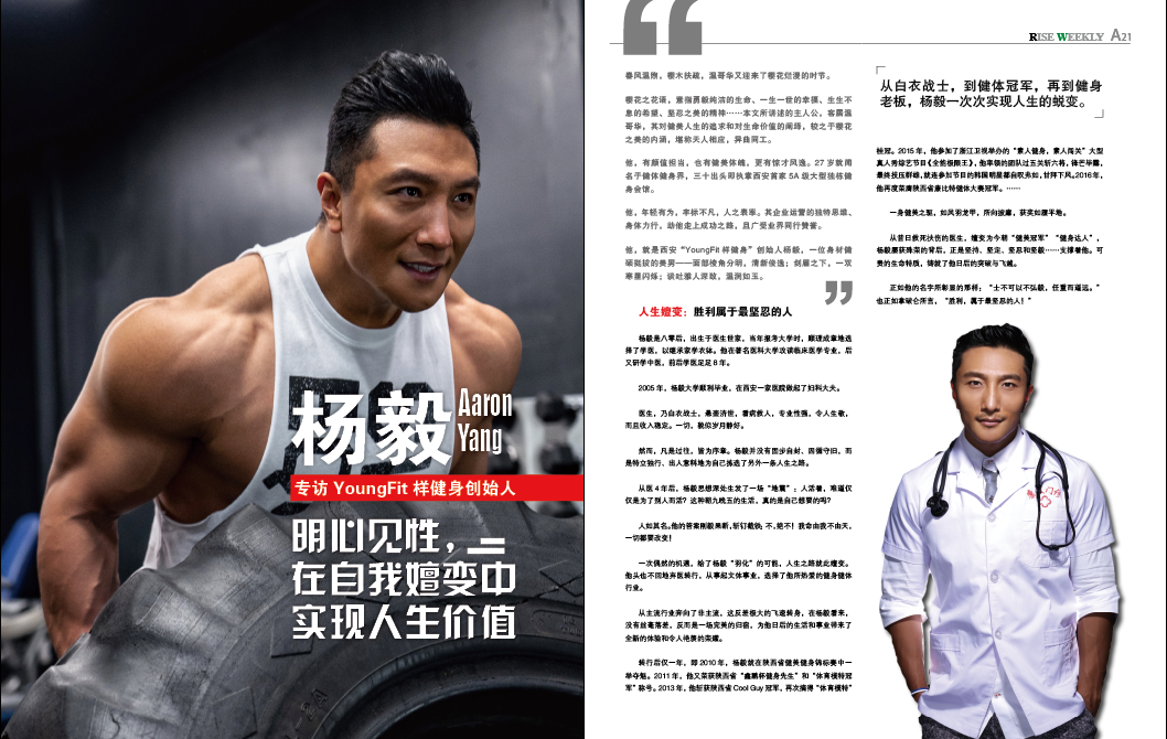 从白衣战士,到健体冠军,再到健身老板,杨毅一次次实现人生的蜕变。不,不仅仅是蜕变,而是跨越,更是超越!
