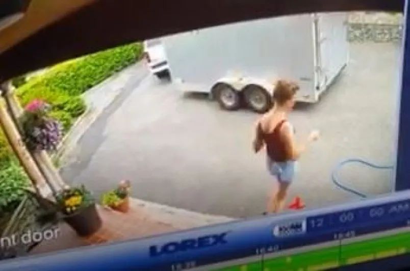 查询监控录像时,家长从视频中看到一名女子把传单扔到他家门口,而且传单没有装在密封的信封里,很容易被孩子看到。