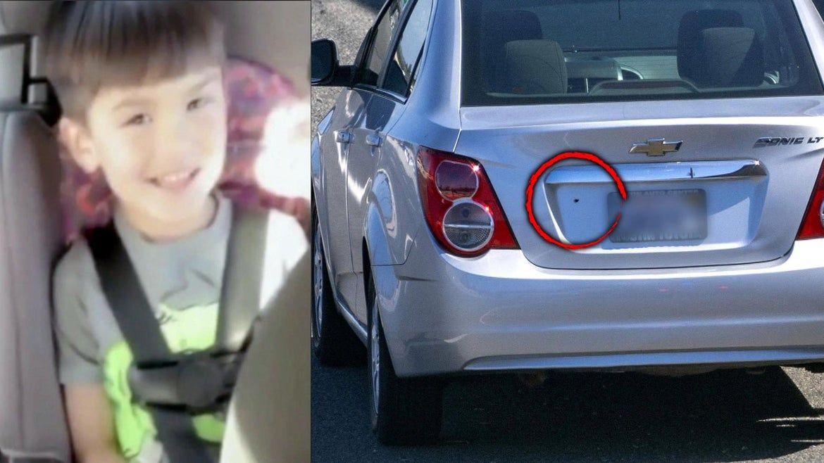 5月21日,6岁的男童Aiden坐在母亲Joanna Cloonan的汽车后座上,去幼儿园上课。