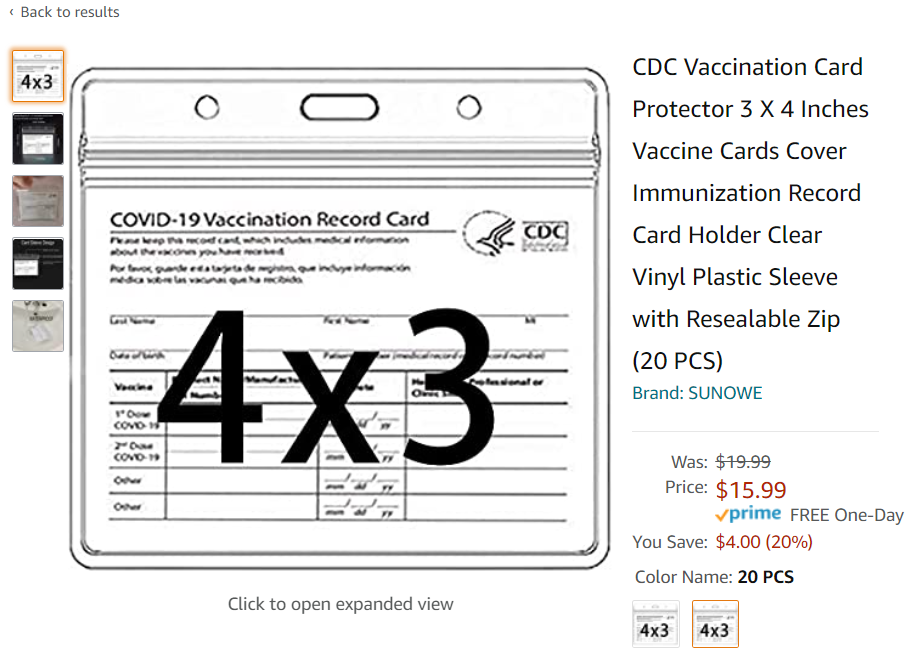 现在问题来了,有网友发现Amazon.ca上已经有人在贩卖空白的美国疾控中心CDC的疫苗接种卡,花16加元就能买到一盒20个的CDC的接种卡。