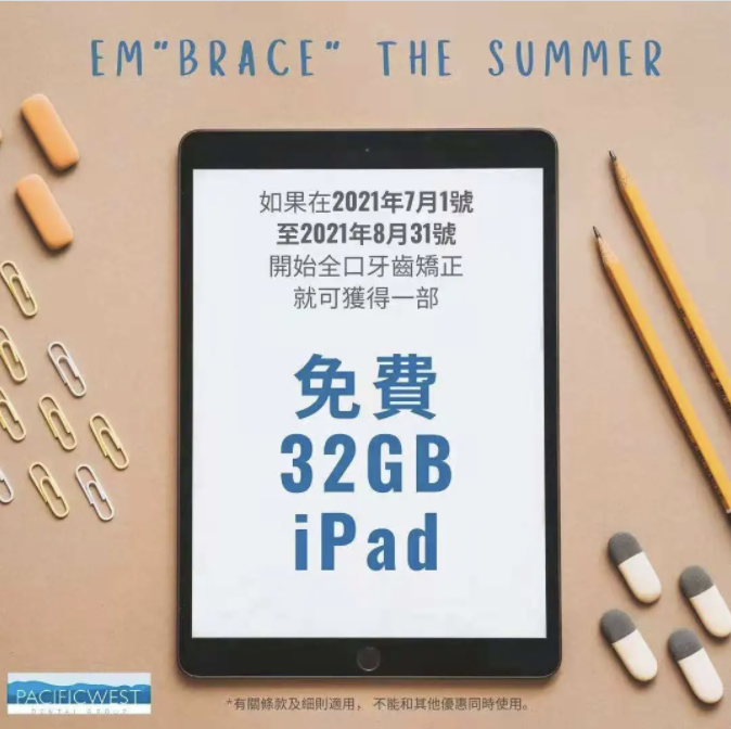 值此店庆之际,7、8月开始矫正就送最新款iPad。首次咨询完全免费,现在就添加客服微信联系我们吧!