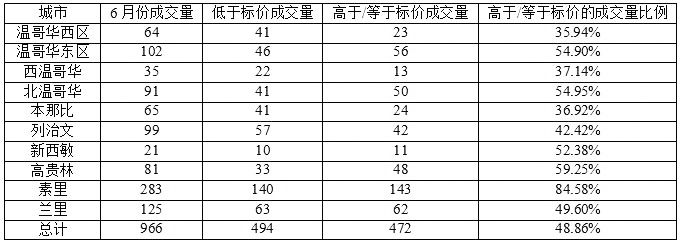从这个列表中我们可以看出,过去一个月内,依然有一半左右的独立屋成交价格都超出了标价,尤其以素里和高贵林这些相对低价的区域为甚。换句话来说,在6月份的独立屋成交量中,有一半左右的独立屋是被买家抢走的,要想买房,还是要准备去“抢”!