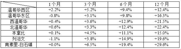 我们来看看温哥华东区、西区、西温、北温、本拿比、列治文、南素里-白石镇等华人聚居和钟爱的独立屋市场,过去一年来这几个城市区域的表现如何呢?