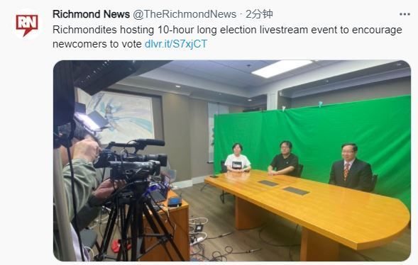 高度视界大选直播已经开始,感谢Richmond News对此次活动的报道支持。链接:https://www.richmond-news.com/local-news/richmondites-hosting-10-hour-long-election-livestream-event-to-encourage-newcomers-to-vote-4350590?utm_source=dlvr.it&utm_medium=twitter