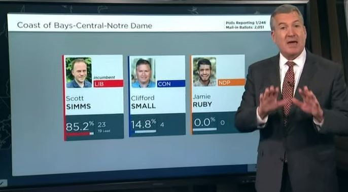 自由党候选人在Coast of Bays–Central–Notre Dame选区的领先优势极大。