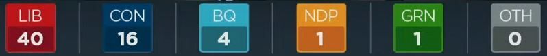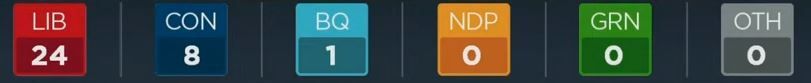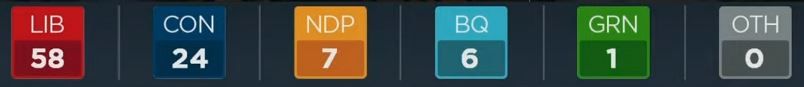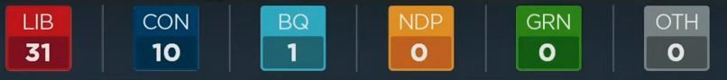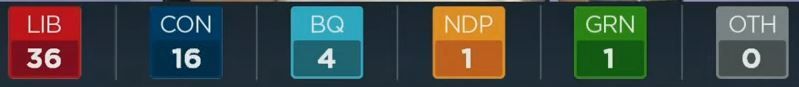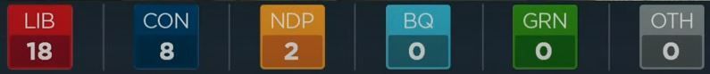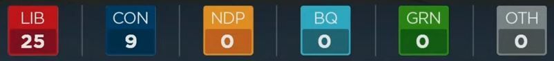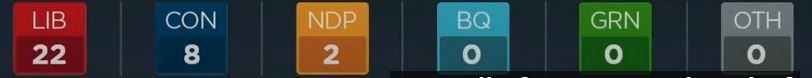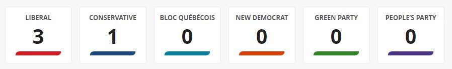 自由党5,保守党1,注意:此为该党的领先选区数量,并非最终结果。