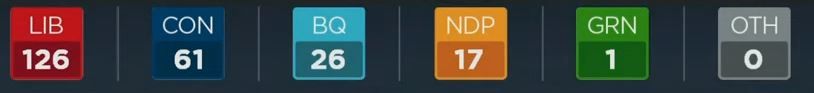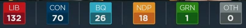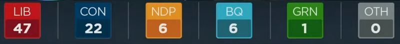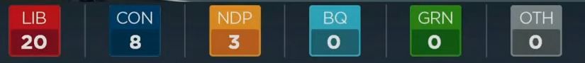 CTV预测,自由党将赢得今年的大选。CBC也给出了同样的预测,目前的唯一悬念是自由党会组成多数政府还是少数政府。