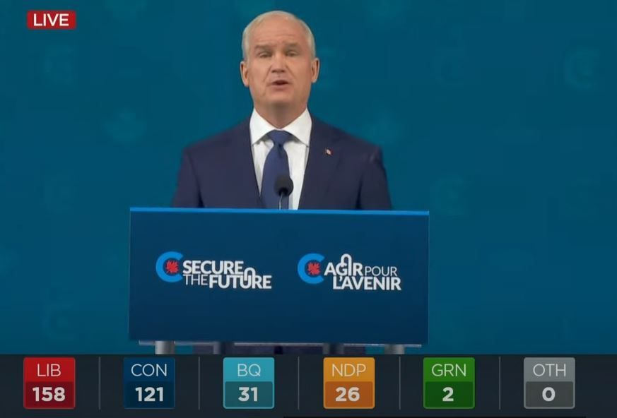 他承认败选,但对特鲁多没有达成多数政府感到满意。