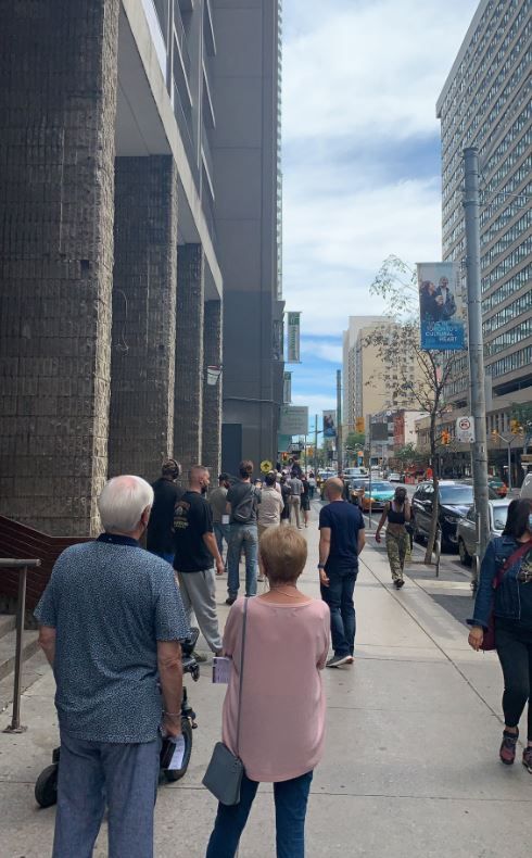 Some very long lineups to vote in downtown Toronto as the number of polling stations has been drastically cut due to Covid 19 safety measures. #Elxn44 pic.twitter.com/6mnnQwabgL