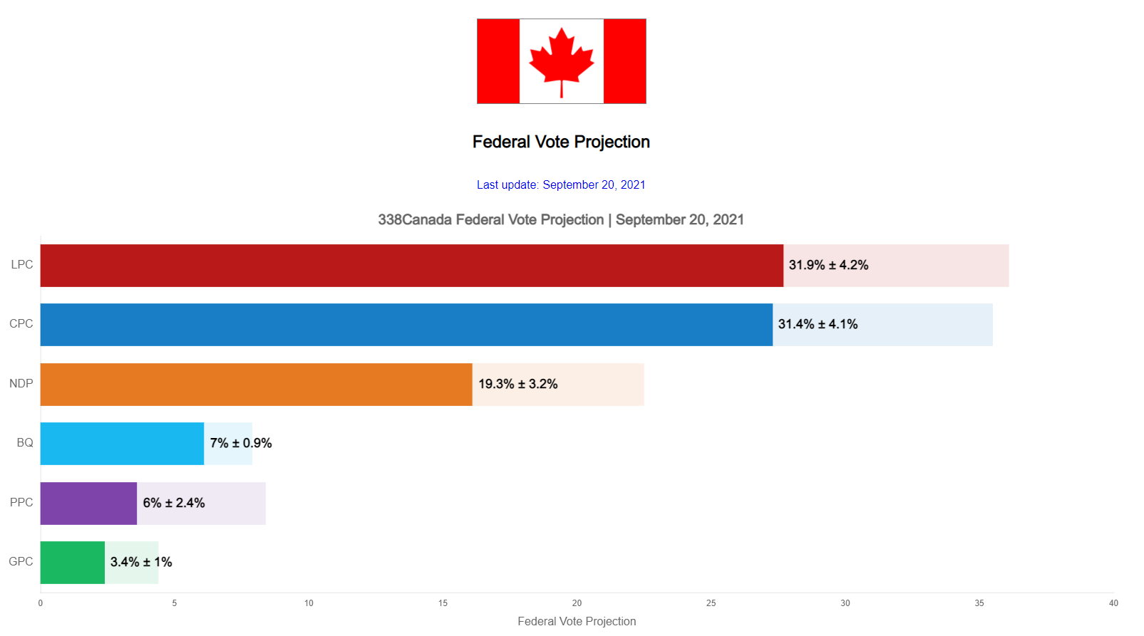 9月20日338最新民调:自由党领先优势微弱