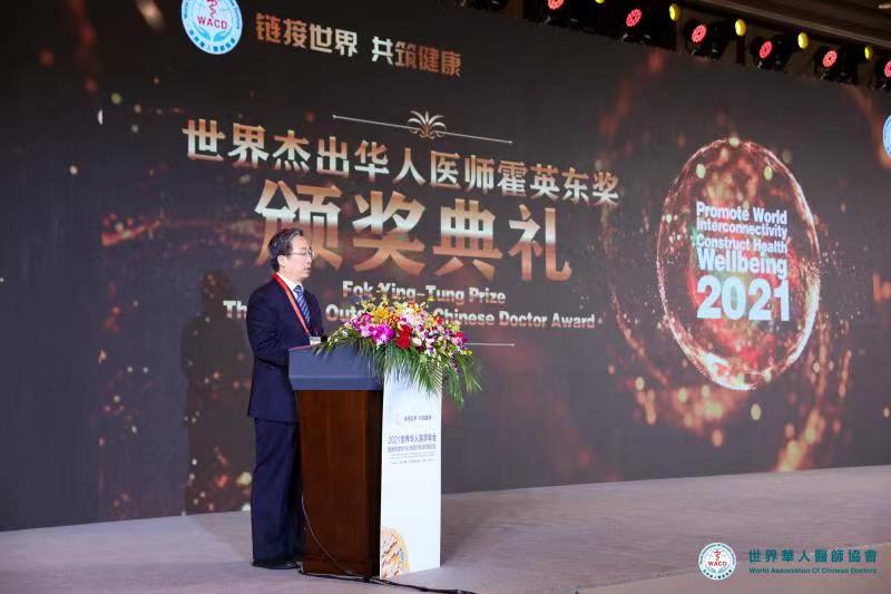 开幕式颁发了第四届“世界杰出华人医师霍英东奖”。该奖项是由世界华人医师协会理事会研究决定设立,以世界华人杰出领袖霍英东先生冠名,霍英东基金会资助,旨在激励世界华人医师队伍的优秀代表,鼓励更多华人医师努力为增进世界人民的健康福祉而贡献力量。世界华人医师协会副会长张亚卓教授宣读了《关于表彰第四届“世界杰出华人医师霍英东奖”获奖者的决定》,授予付钢先生“世界华人医师协会霍英东特别贡献奖”,张澍田、陆前进、张丽玛、陈肇隆、程建国、蒋曹阳、雷基、战晓春“世界杰出华人医师霍英东奖”。