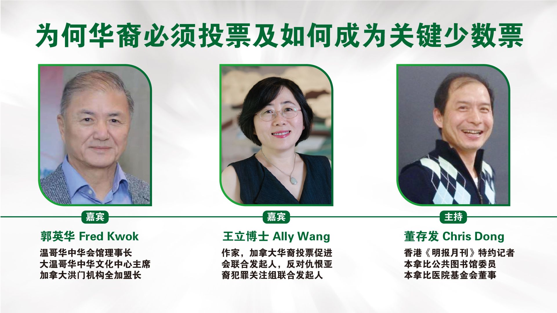 觉醒的华裔不仅要在投票时发声,还要密切监督政府执政。不仅要监督,还要给与建议。在20日的大选直播中,以个人身份而非列治文市议员参加节目的区泽光博士提出,华裔在参加加拿大社会和政治建设时,应逐渐摆脱或改变“悲情”的诉说,要转变成“智库”的角色。就是说,华裔不再,或者不仅再由于被歧视才关注政治、选举,而是要真正积极、主动地站起来、走过去,给与加拿大政治发展以援手。因为,“移民都是看过两个世界的”,应该能有更多的经验。这也如同欧阳光伟教授提出的,“加拿大的多元文化是有活力的、有生命的,因为能不断地吸纳、融入新的内容”。