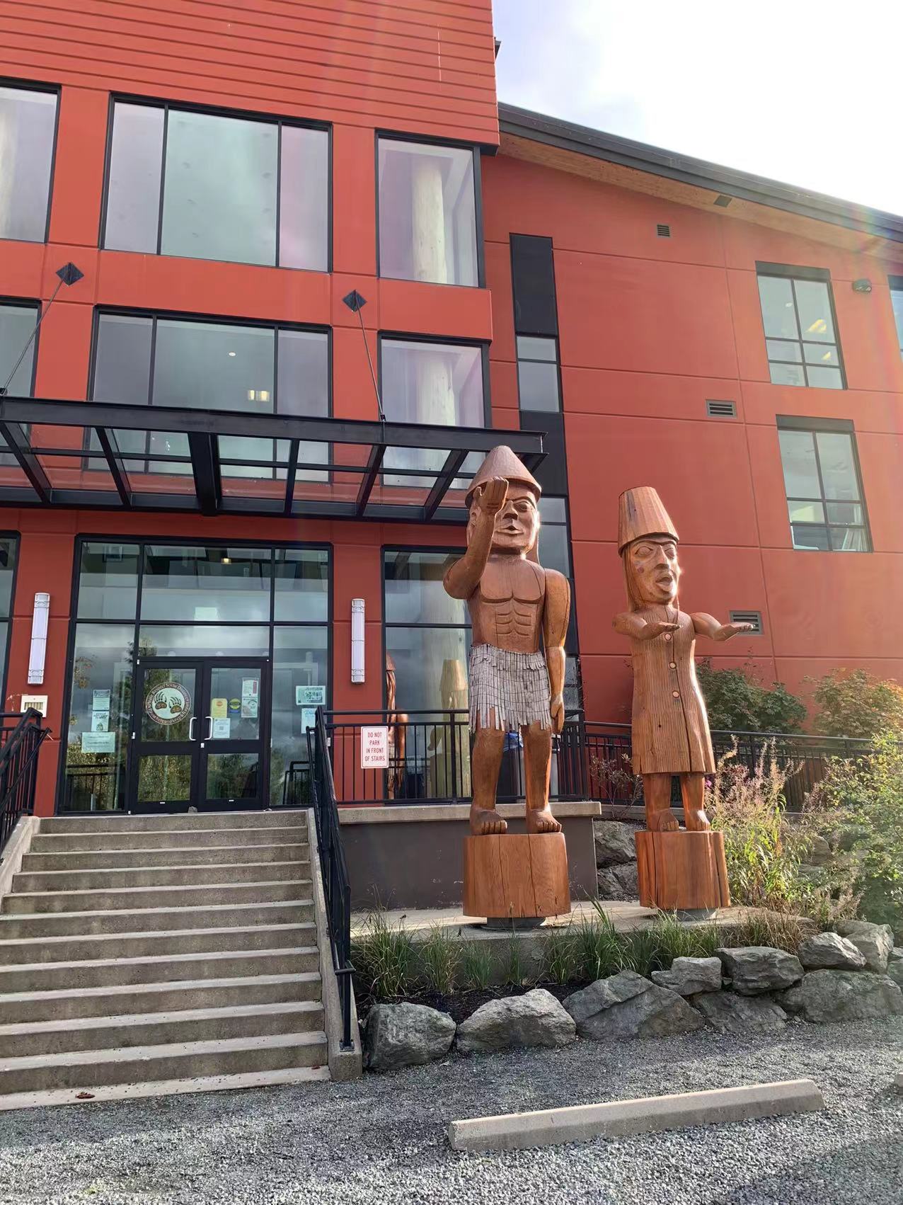 9月28日,加拿大百人会组织了一场原住民文化之旅。由此,加拿大山川草木的故事展现而出。车一路开,Stolo Nation文化中心的研究员Naxaxalhts’i, Albert (Sonny) McHalsie博士指着被云雾遮掩的山峦维维道来。比如,高速路右边的群山是三个女儿和一位母亲,最低的那座山是娇弱的幼女,由于离妈妈最远、身量又最矮,她不停地在哭泣——眼泪是山间的瀑布。比如,菲沙河左边的山峦是雷鸟的化身。不仅沿途的每一座山都有名字和相关的故事,连小溪、岩石也多半有“前生”出处。