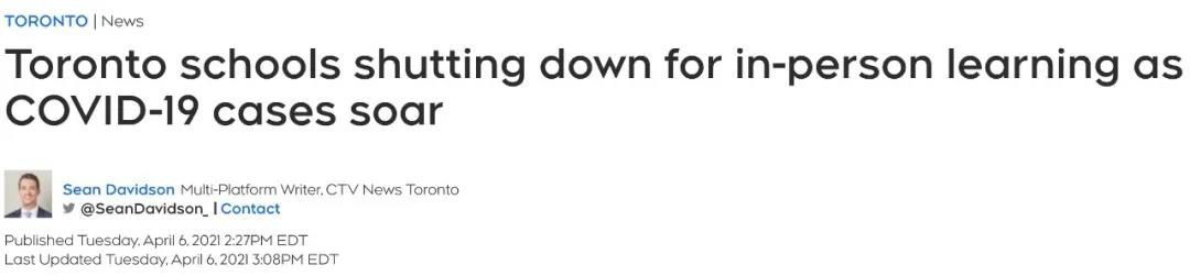 4月6日星期二,多伦多公共卫生厅Toronto Public Health (TPH)突然宣布从7号星期三开始,由于病毒变种导致的感染激增,全市所有中小学(elementary & secondary schools)课堂关闭到4月18日,在此期间学生转为在线上网课。如果届时疫情仍未得到缓解,将有可能继续延长关停。