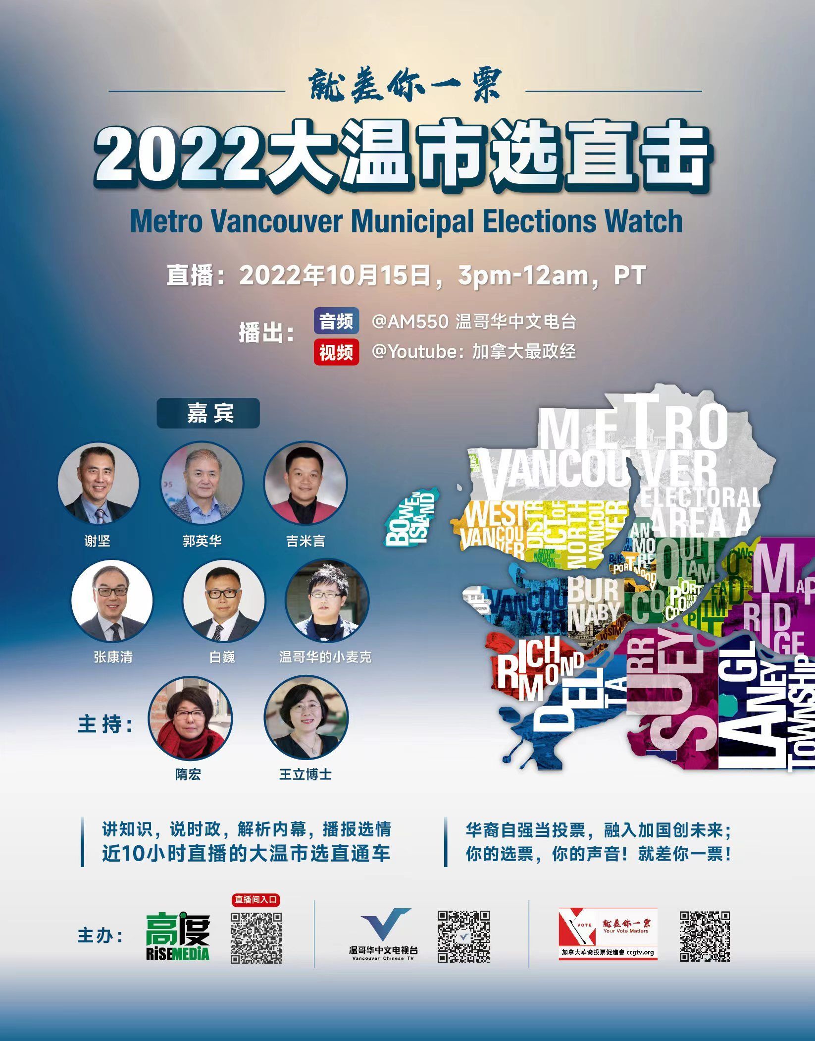 希望更多的年轻一代华裔能走上政府决策者的岗位,提升我们华裔在加拿大的政治地位,为我们少数族裔社区谋取权益。希望大家动员家人和朋友,在10月15日星期六这天都到投票站投上您宝贵的一票!