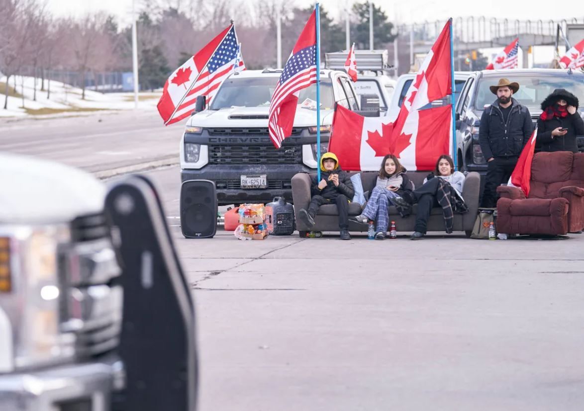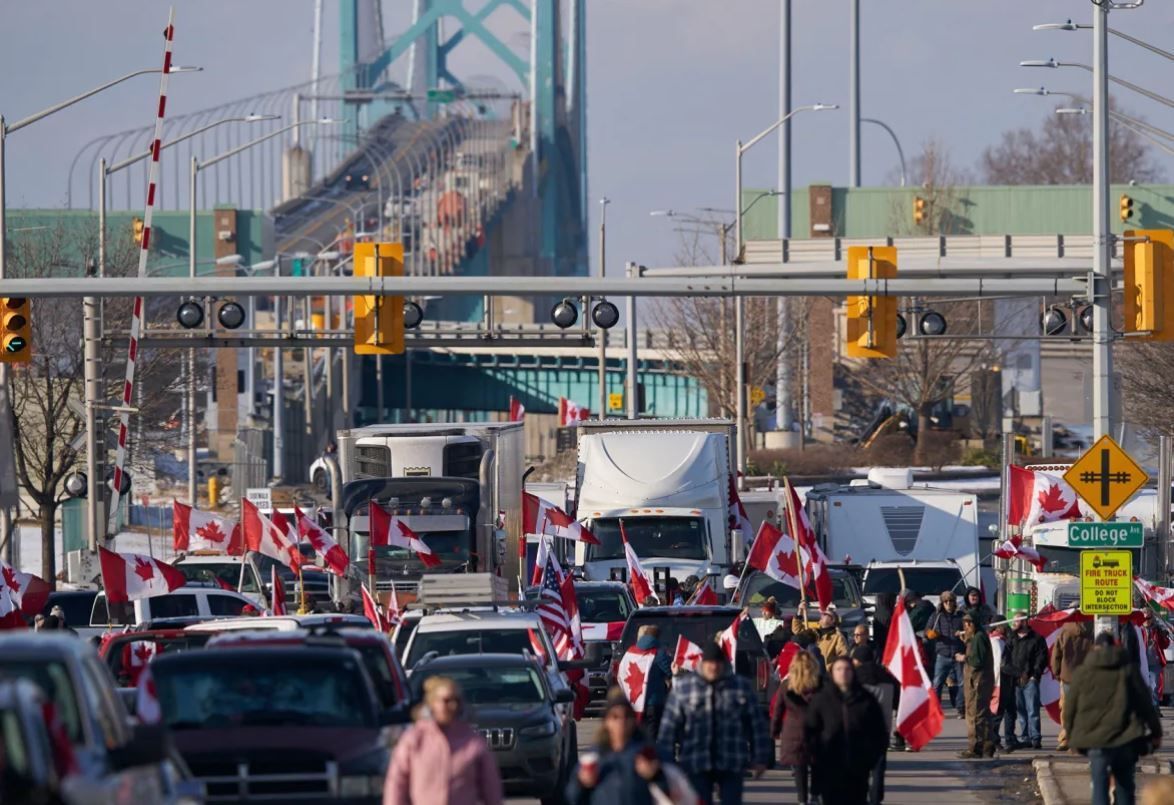 在连接安省温莎市和美国底特律市的大桥上,抗议者已经封桥5天进行抗议,这个桥梁是加拿大最繁忙的陆路过境点之一。