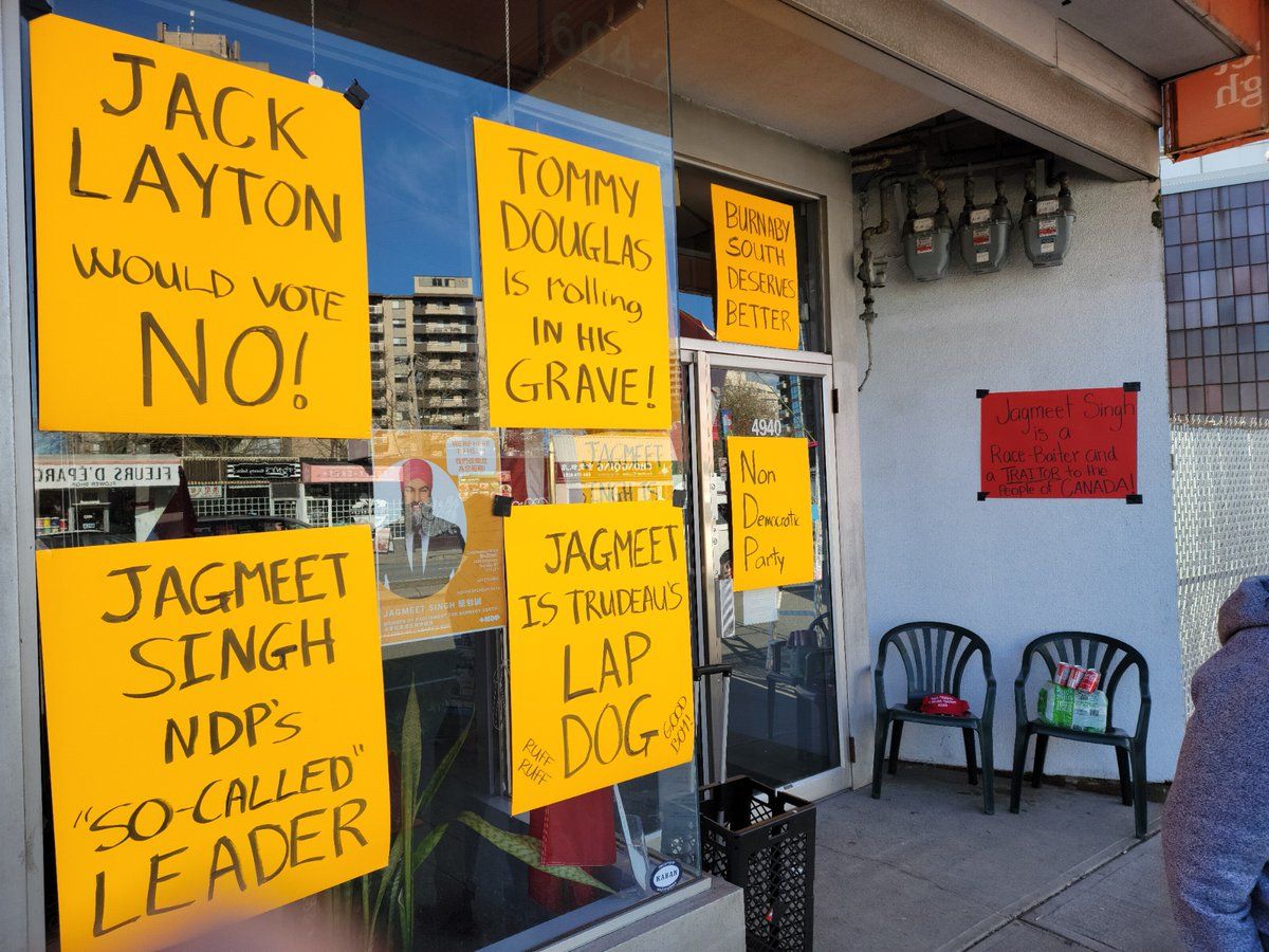 其实不仅仅是笔者,许多加拿大选民也看到了这点,戒严闹剧上演的第一天,驵勉诚所在的本拿比南选区国会议员办公室门口就被贴满抗议标语,更有举着加拿大国旗的示威者不停挥舞国旗发声,俨然成为新晋网红打卡景点。而联邦自由党并没有因驵勉诚的顺从选择礼让新民主党,老新民主党支持者则因不满驵勉诚逐渐流失,从338 Canada民调来看,驵勉诚在自己选区只领先自由党6个百分点,属于误差范围内,去年十月还领先的卑诗省也以27%的支持率沦为第三,届时出现双输局面,即驵勉诚失去本拿比南选区席位,联邦新民主党输掉卑诗大本营,总席位跌破20席以下是可以预见的。