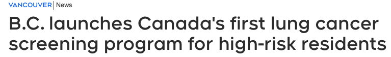 【加拿大乐活网lahoo.ca 江礼且综述】 本地时间5月26日,BC省已经正式启动全加拿大首个全省肺癌筛查计划。该计划旨在为55至74岁或有吸烟史等高危人群进行肺癌筛查。