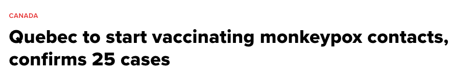 在疫情最严重的魁省,当地已经开始给猴痘接触者接种疫苗。到目前为止,魁省除了确诊的25个病例,还有一批疑似病例正在调查中。当地的Imvamune疫苗接种对象包括确诊或疑似猴痘病例的密切接触者。
