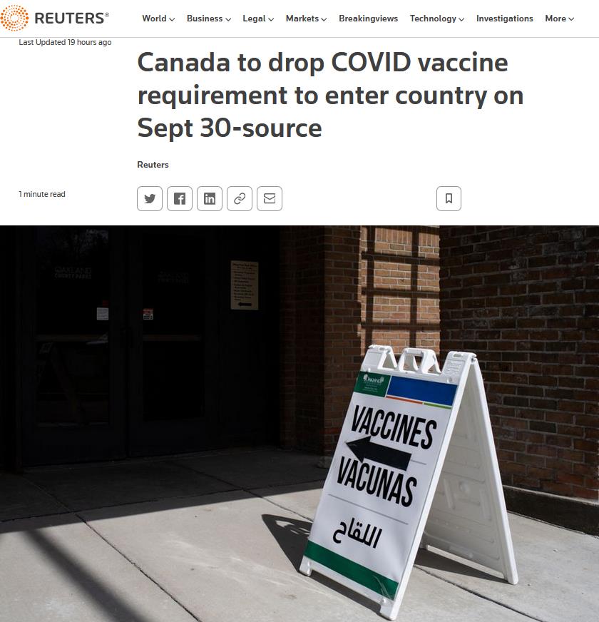 加拿大方面传出9月30日(周五)将取消所有的入境防疫措施。