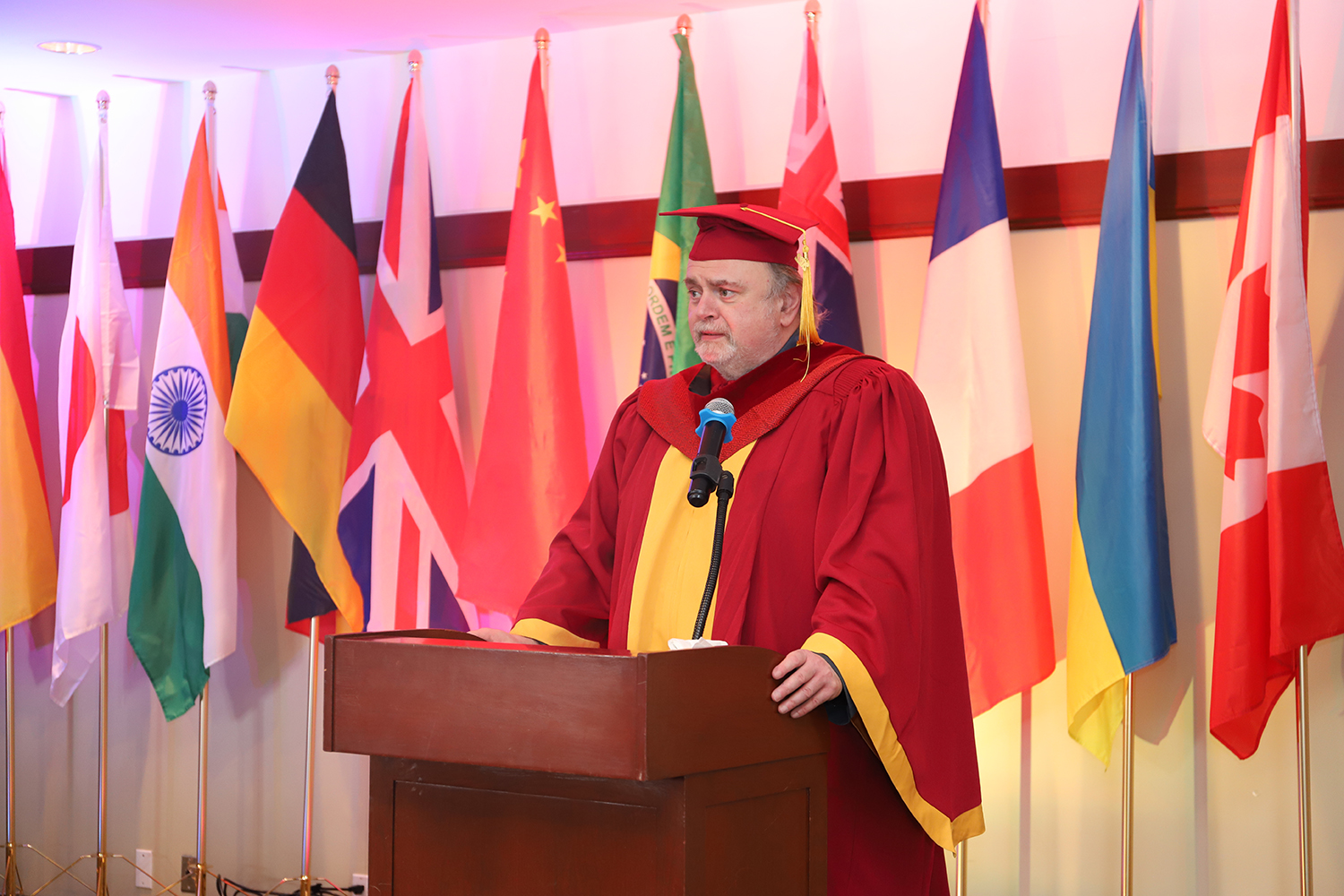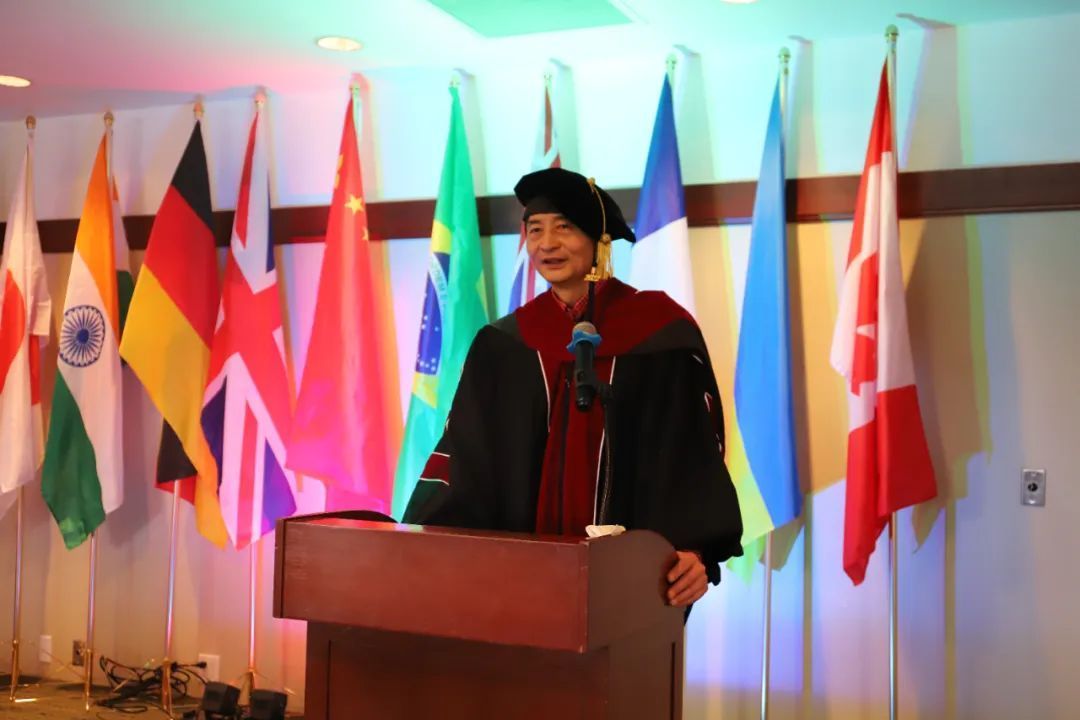 法国SRBS商学院温哥华校区校长Dr.Stanley Markotich上台亲自为毕业生颁发了毕业证书,并向全体毕业生发表了热情洋溢的贺词和寄语。