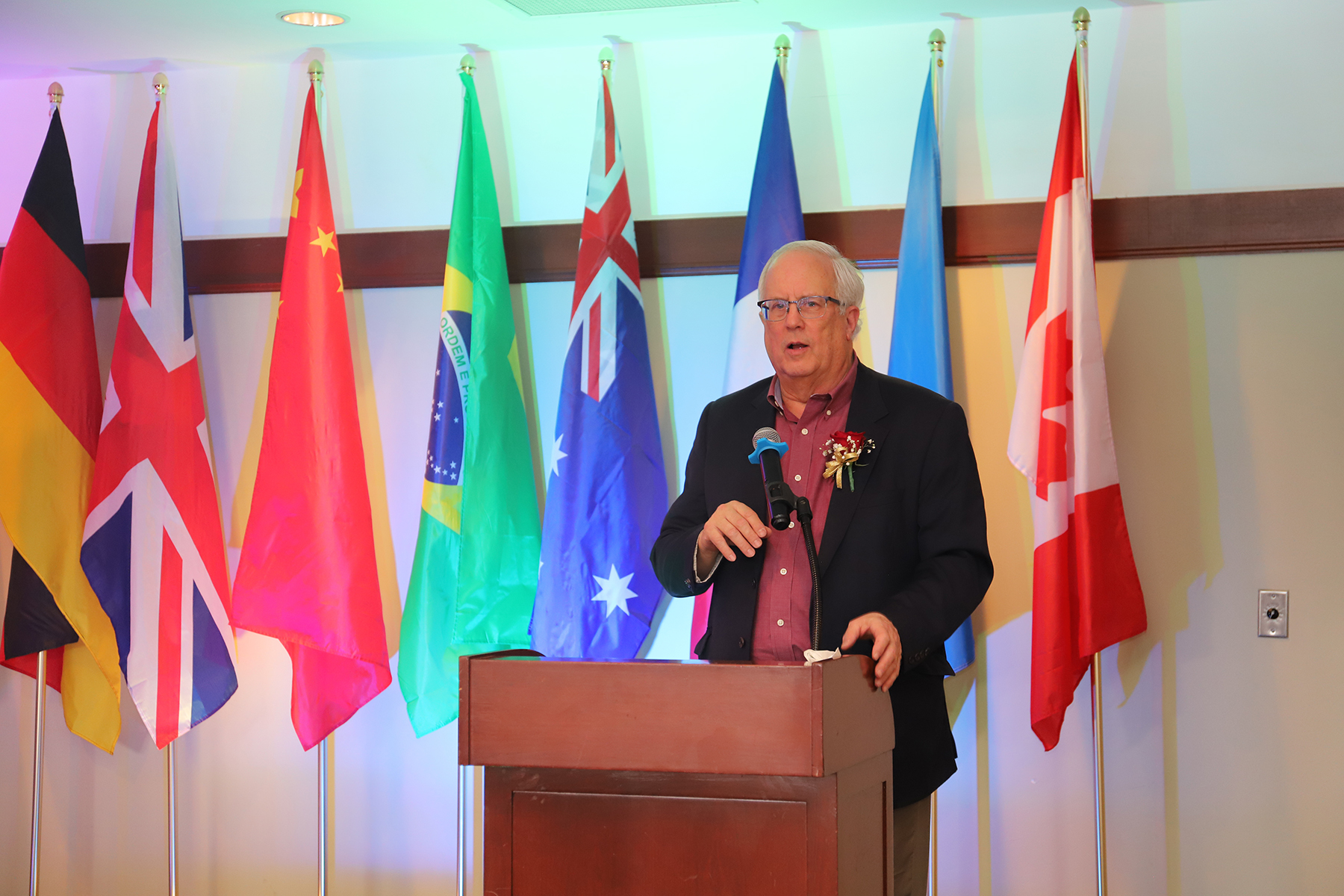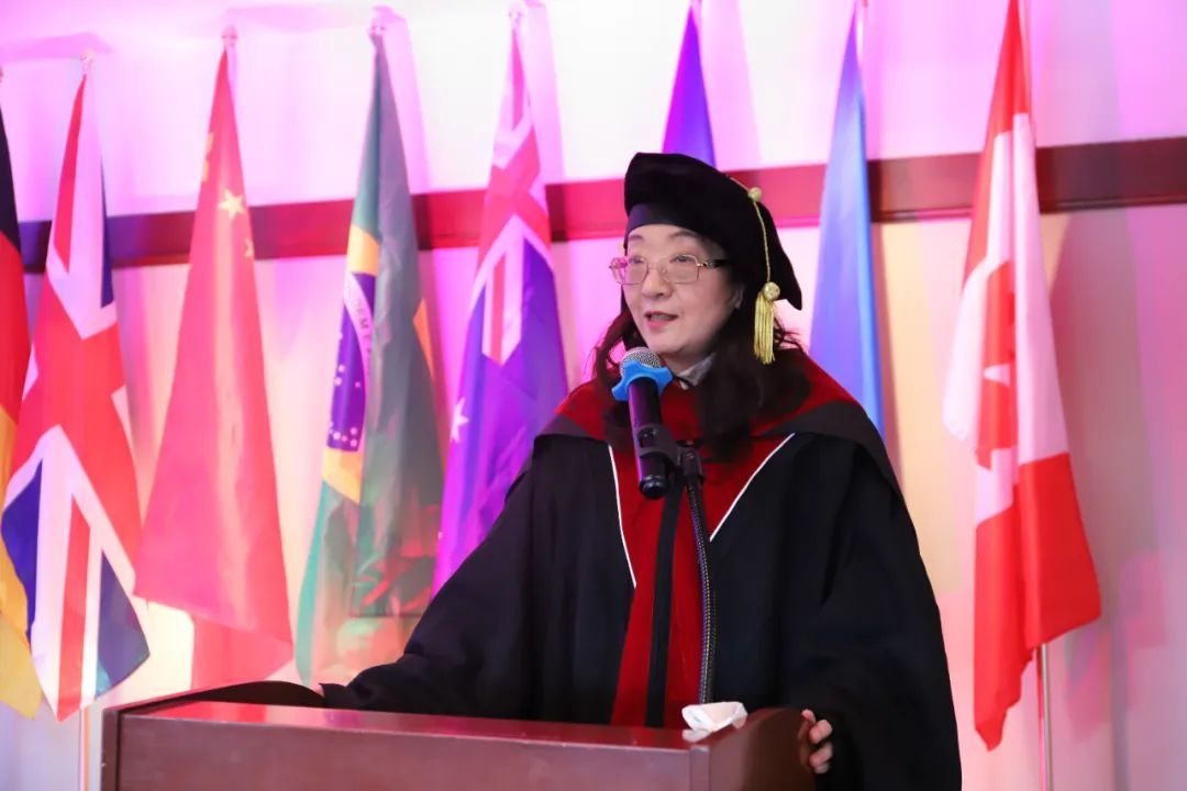 典礼结束之际,May He(何笑梅)女士作了总结性发言。她与来宾和学员们共同举杯,祝福SRBS的2021届毕业生们“功成名就、平步青云”,同时寄语荣耀获聘GEDI的研究员们“前程锦绣、继往开来”!
