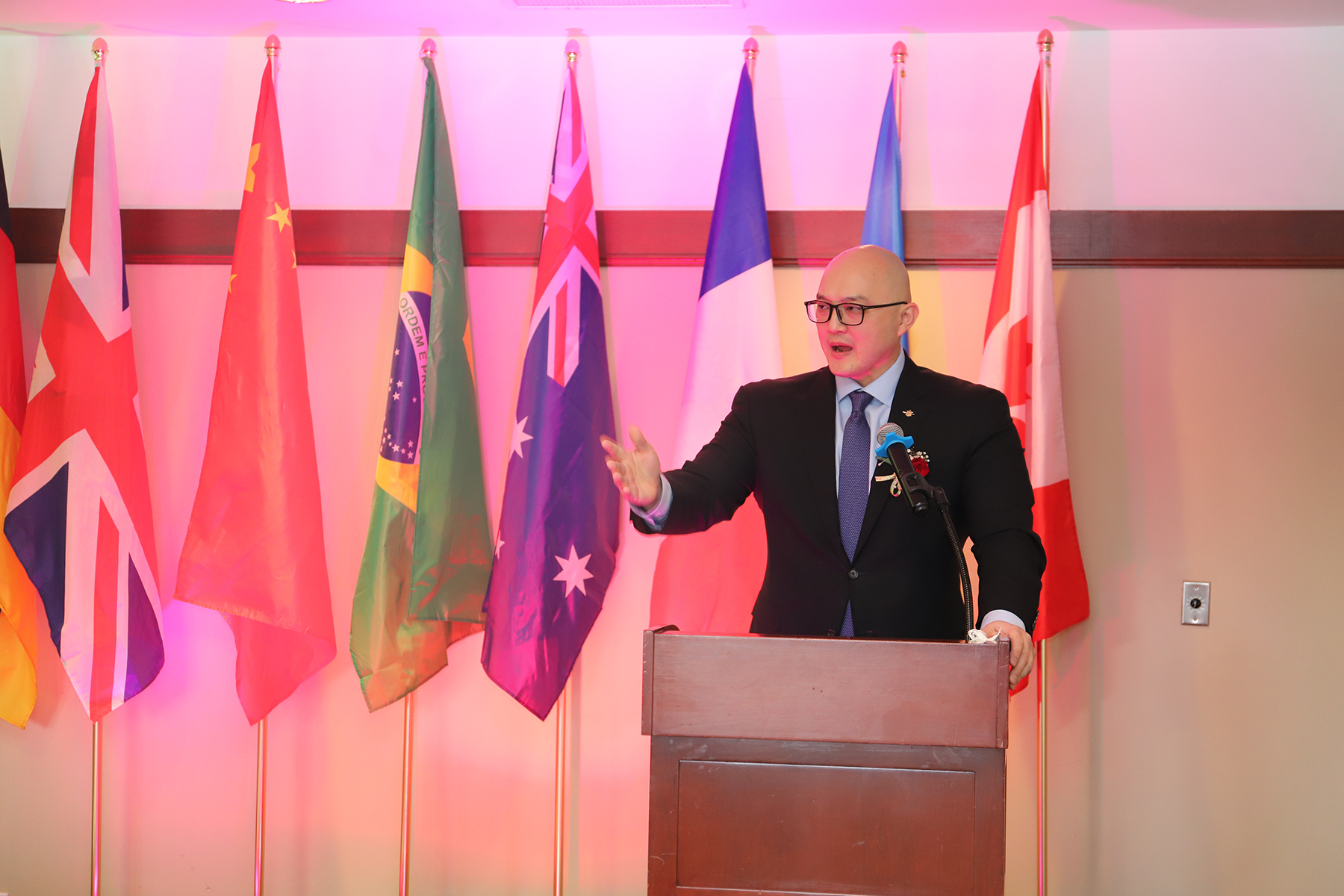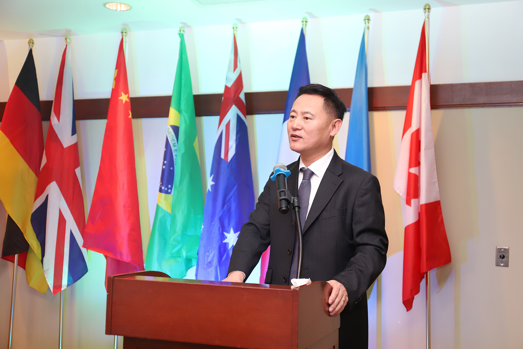 嘹亮的歌声结束,受邀出席的嘉宾加拿大联邦国会议员Parm Bains(白恩斯)先生、列治文南中区省议员Henry Yao(姚君宪)先生、列治文市市长Malcolm Brodie(马保定)先生依次上台致辞,并向法国SRBS商学院和毕业生送上真挚的祝福。