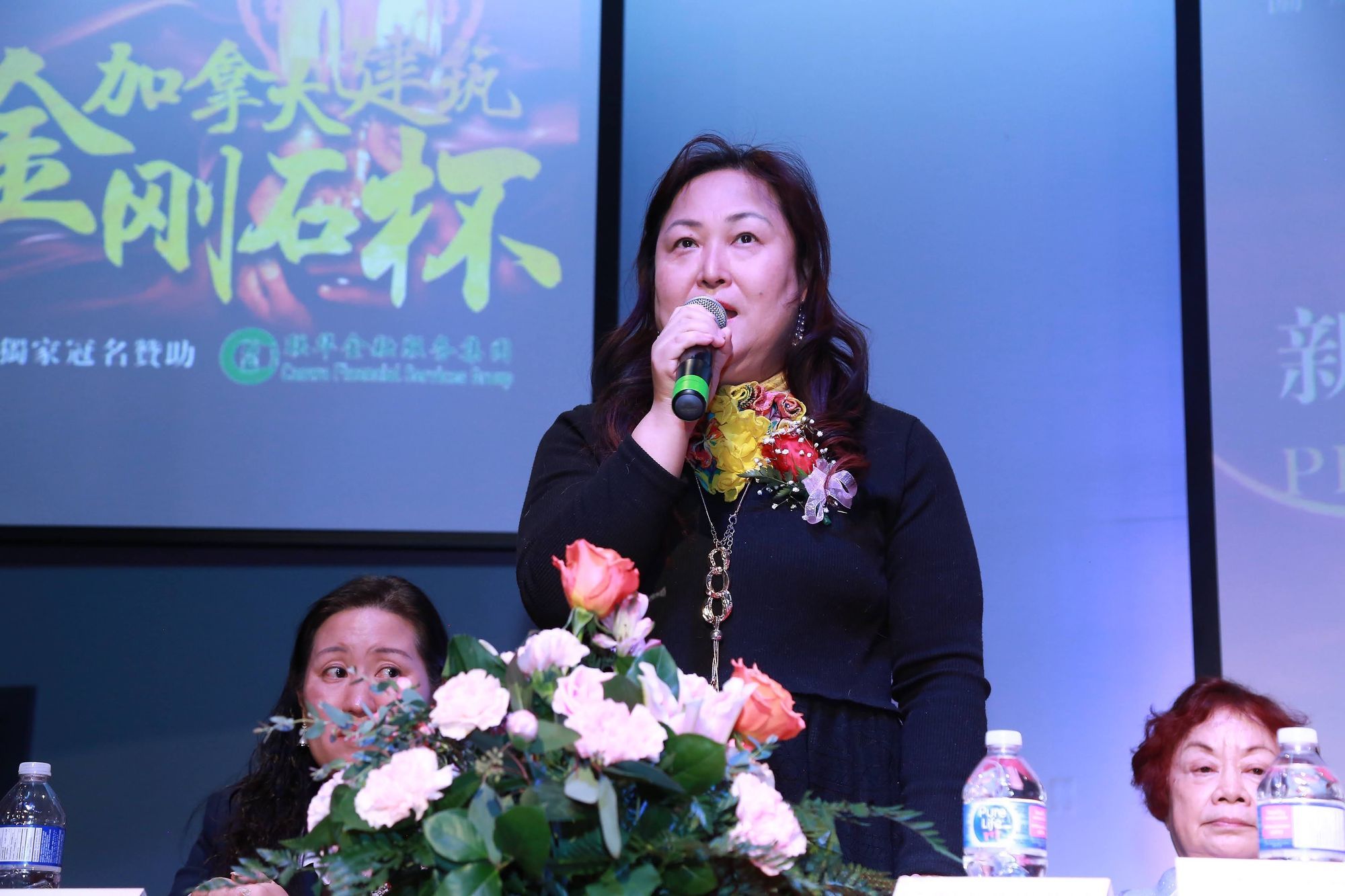 加拿大国际贸易促进会会长郑晓玲女士登台致辞,预祝第二届建筑金刚石杯评选活动圆满成功。