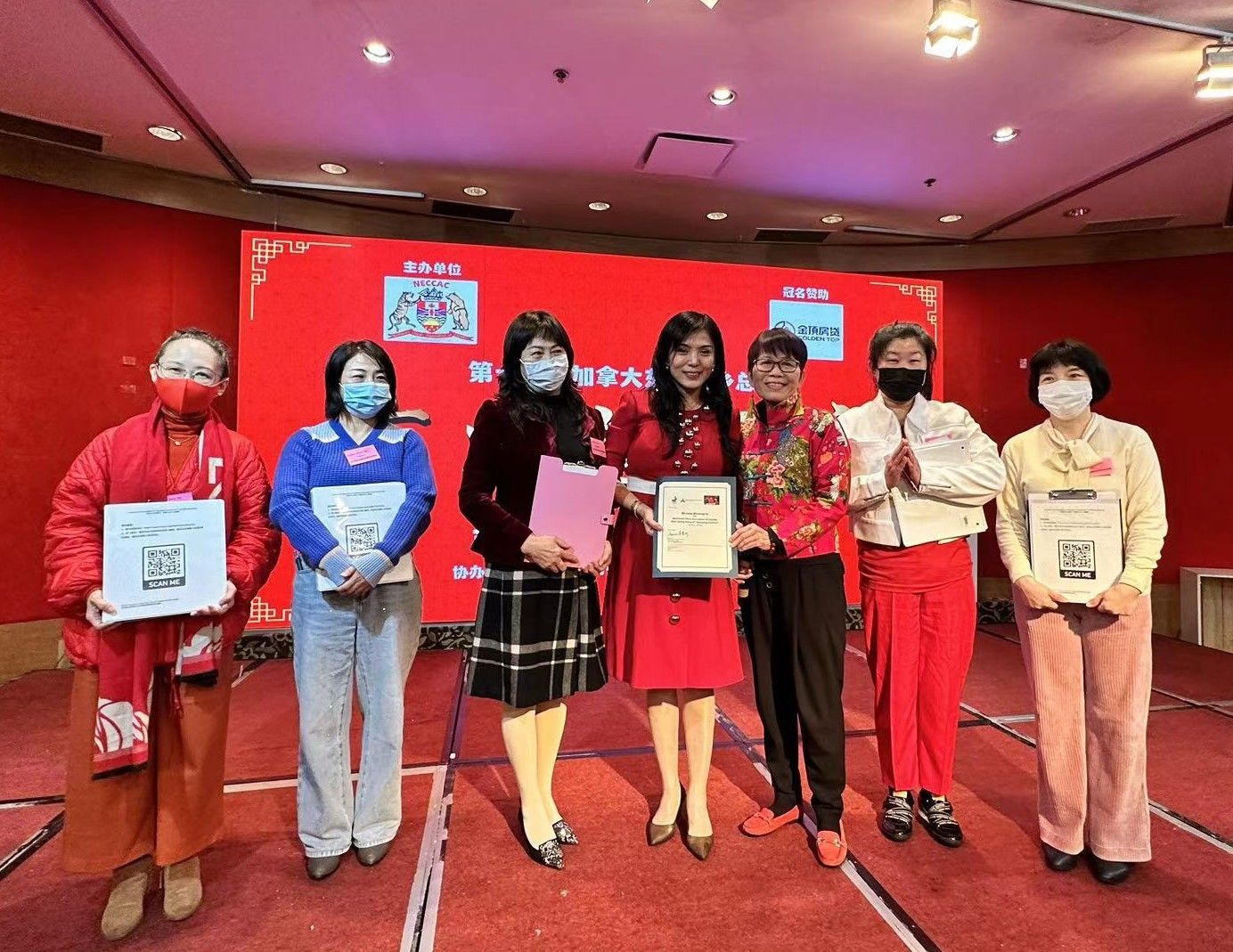 加拿大BC省议员屈结冰给大家拜年,并颁发给韩雪莹会长祝贺赞扬状。