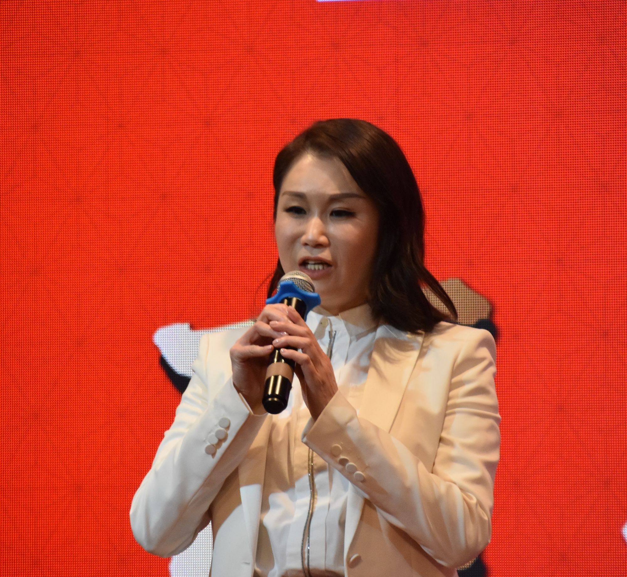 韩雪莹会长欢迎介绍到场嘉宾后,在热烈掌声中致辞: