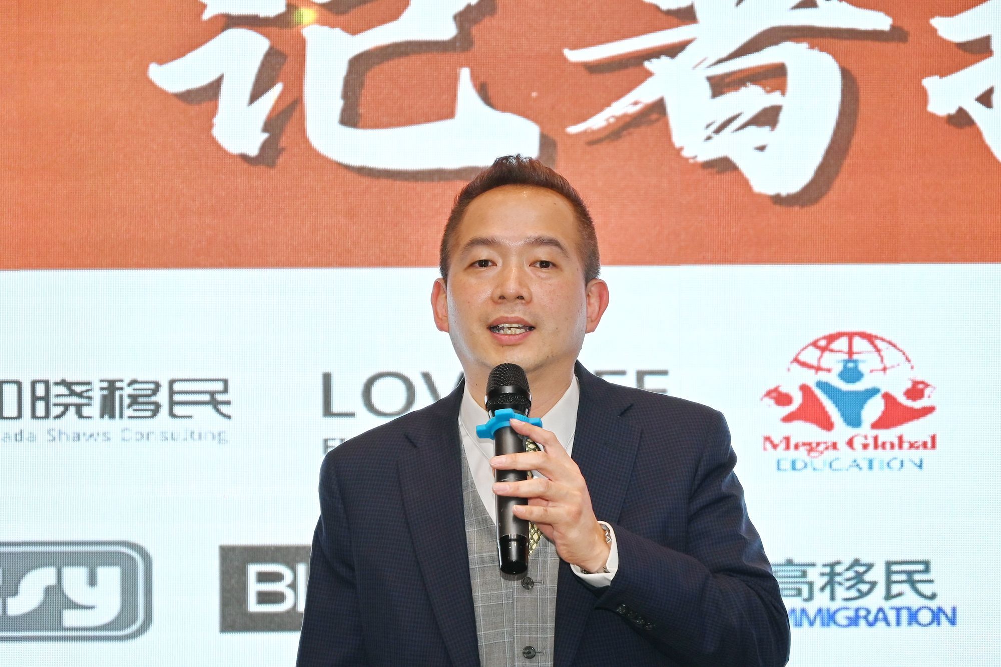 温哥华教育局学务委员钱育廷先生致辞,预祝本次大赛圆满成功。