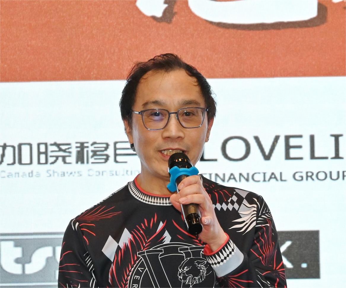 被誉为“音乐原动力”并热心社区慈善事业的温哥华本地著名歌手、评委林国安先生讲话。