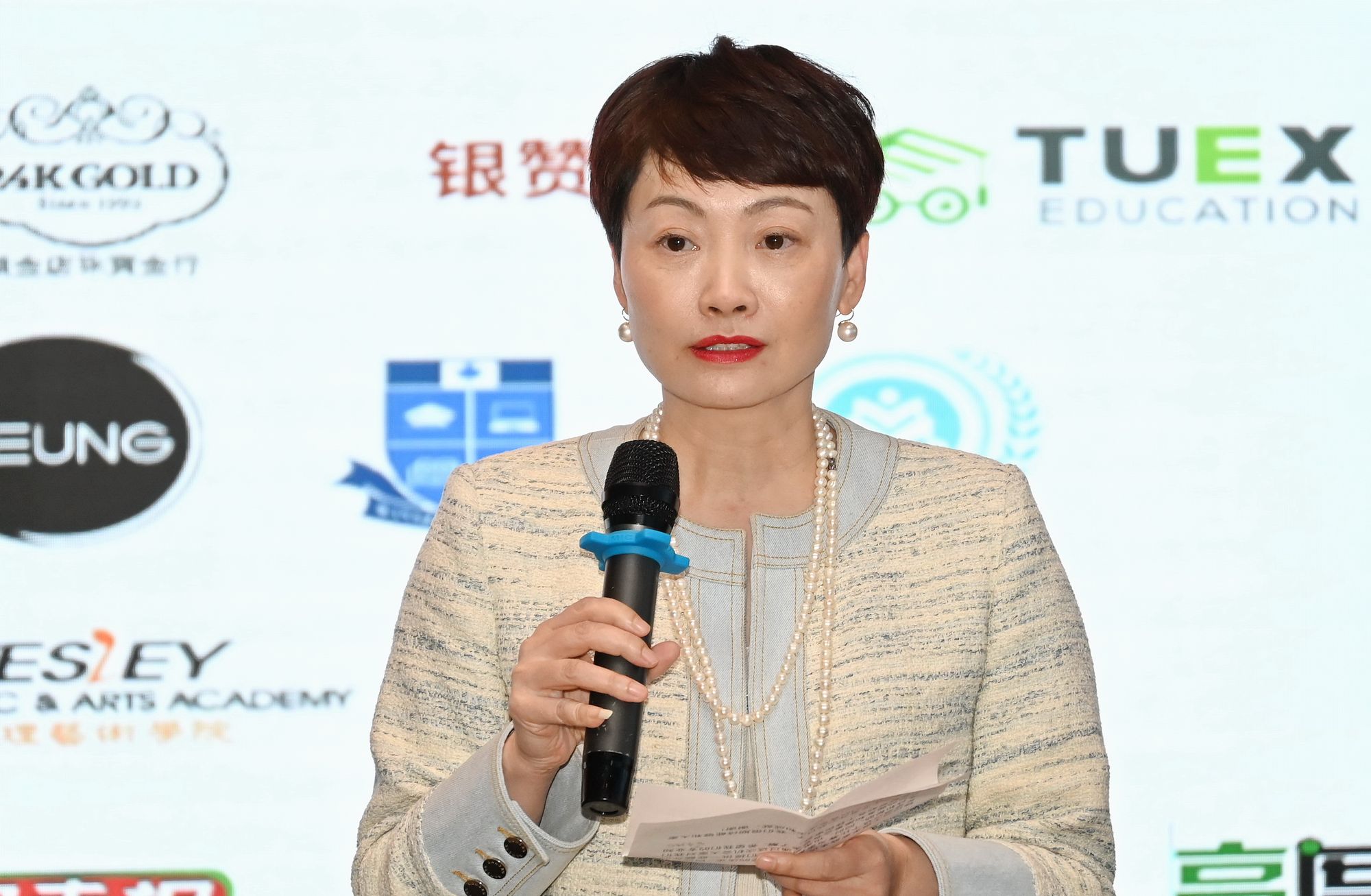 列治文教育局学务委员黄秀玲女士致辞,预祝本次大赛圆满成功。