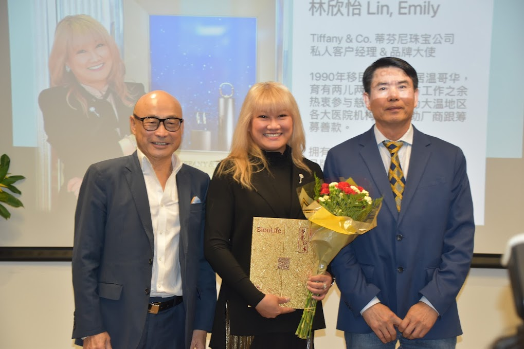 温哥华运营中心领导查理张给有贡献的中医师和艺术家赠送佰傲莱创新营养品