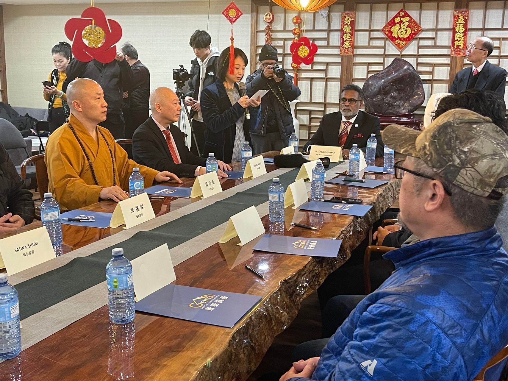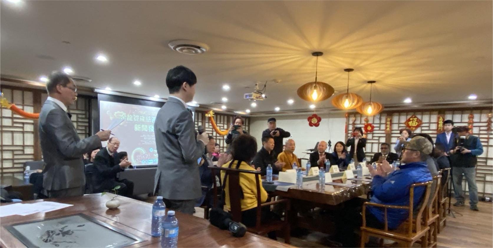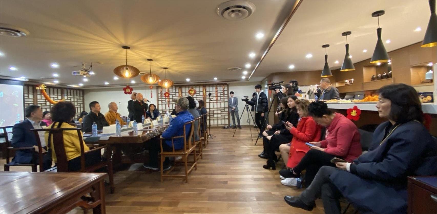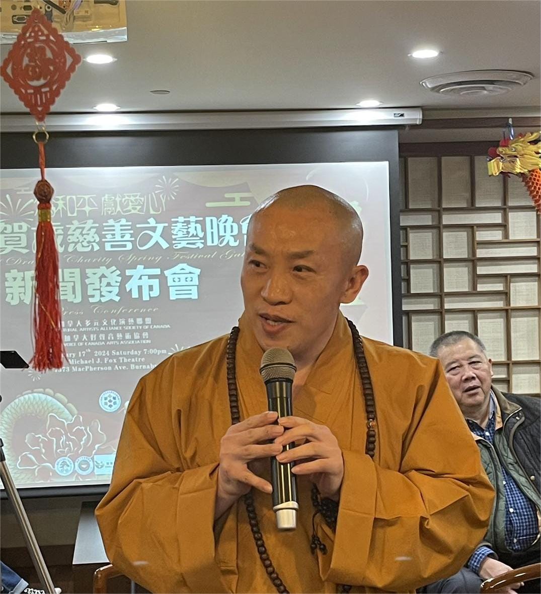 司徒顺、僑領Jeffrey 王、释行武法師、贊助商May 趙、榮譽顧問、藝術顧問李振傑、王晨、團長張焱、演員等陸續發言支持义演募捐,支援难民。