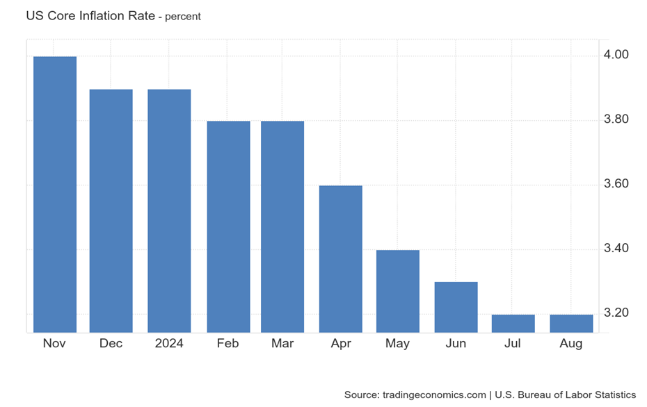 自2022年美联储开始加息以来,美国的整体通胀率从接近9%的高点逐步下降,截至2024年8月,核心通胀率(剔除了波动较大的食品和能源)已降至3.2%,接近美联储设定的2%通胀目标。尽管核心通胀率已有显著回落,但是回落的速度已经放缓,核心通胀存在一定的粘性,这表明,即便整体通胀有所下降,企业和消费者仍然面临较大的成本压力。通过此次大幅降息,美联储希望降低融资成本,缓解企业和家庭的财务压力,进一步加速核心通胀的下降,并通过此举推动经济中的投资和消费增长。